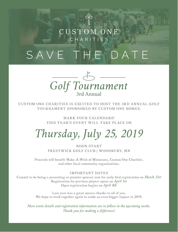 At Custom One Homes we believe in giving back, which is why we created Custom One Charities. It’s our way