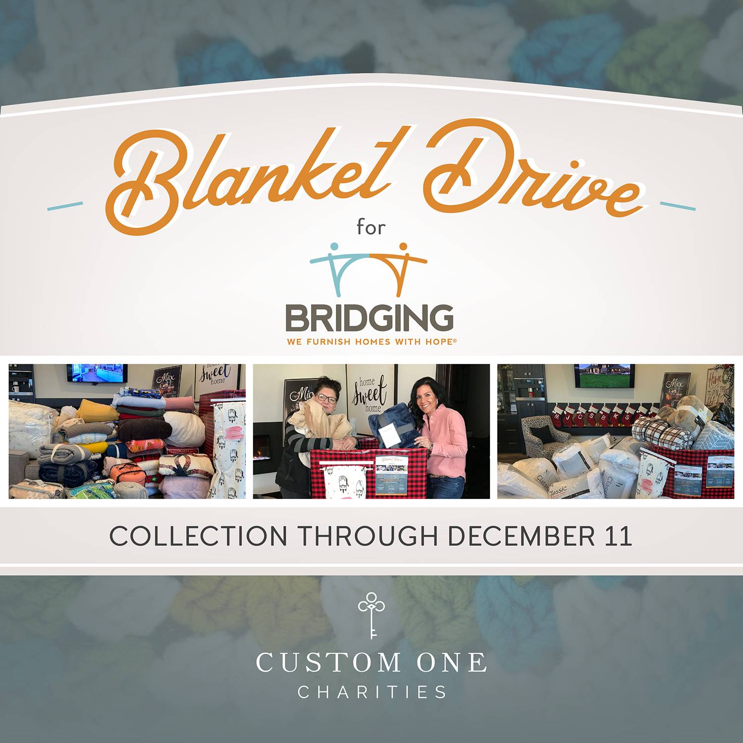 YOU can help Bridging furnish homes with hope by donating new and gently used blankets – over 13,000 blankets are