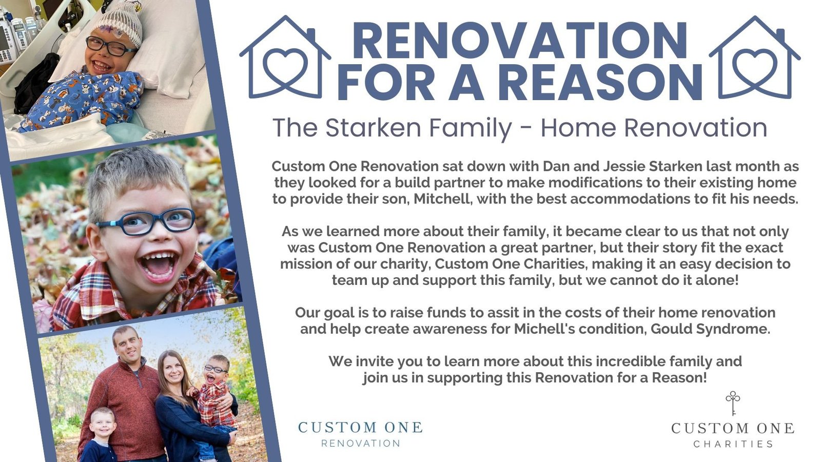 Custom One Charities, and our renovation division, Custom One Renovation have come together to support this wonderful family and their