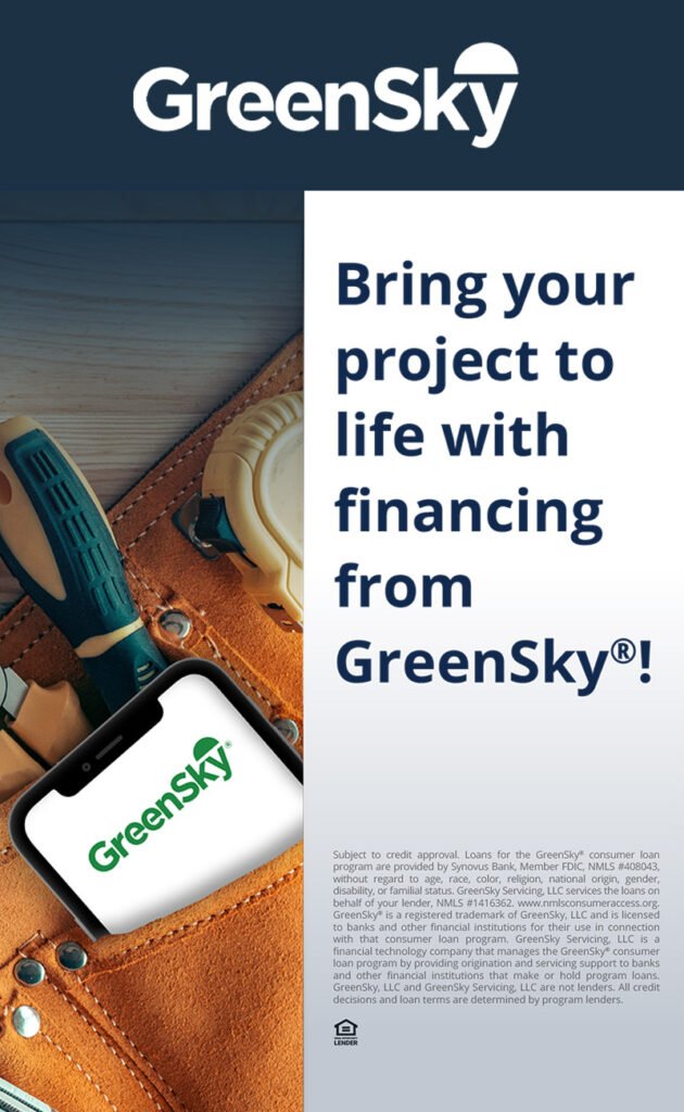 Custom One is thrilled to offer financing options for your Custom One Landscaping and Custom One Exteriors project through GreenSky® Finance.