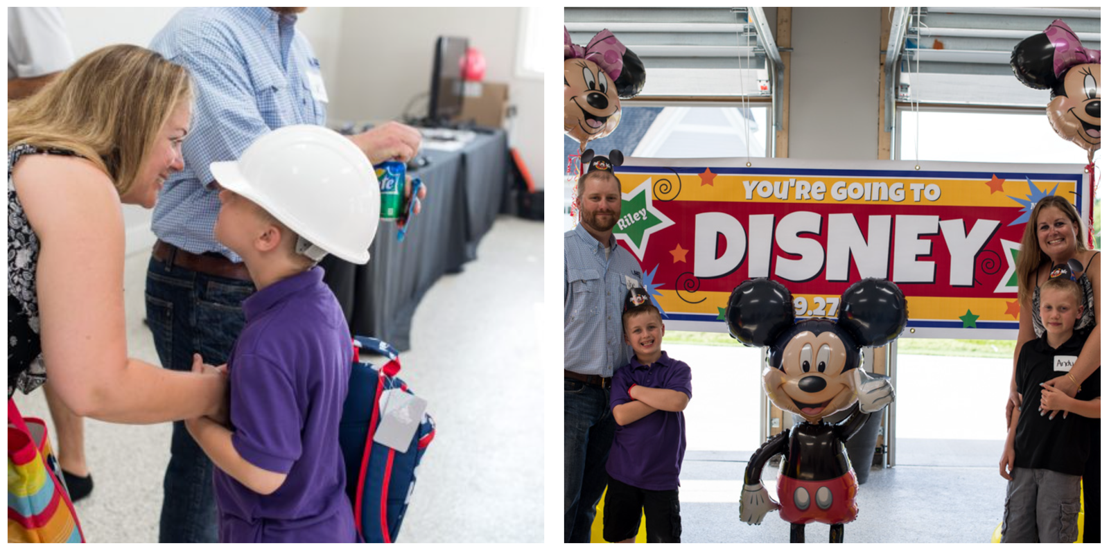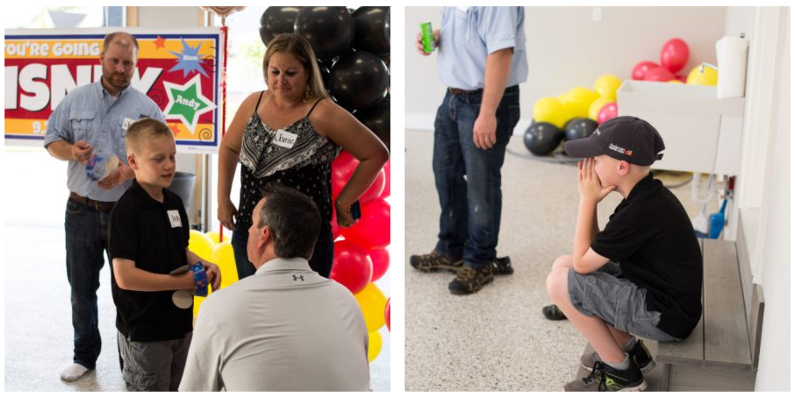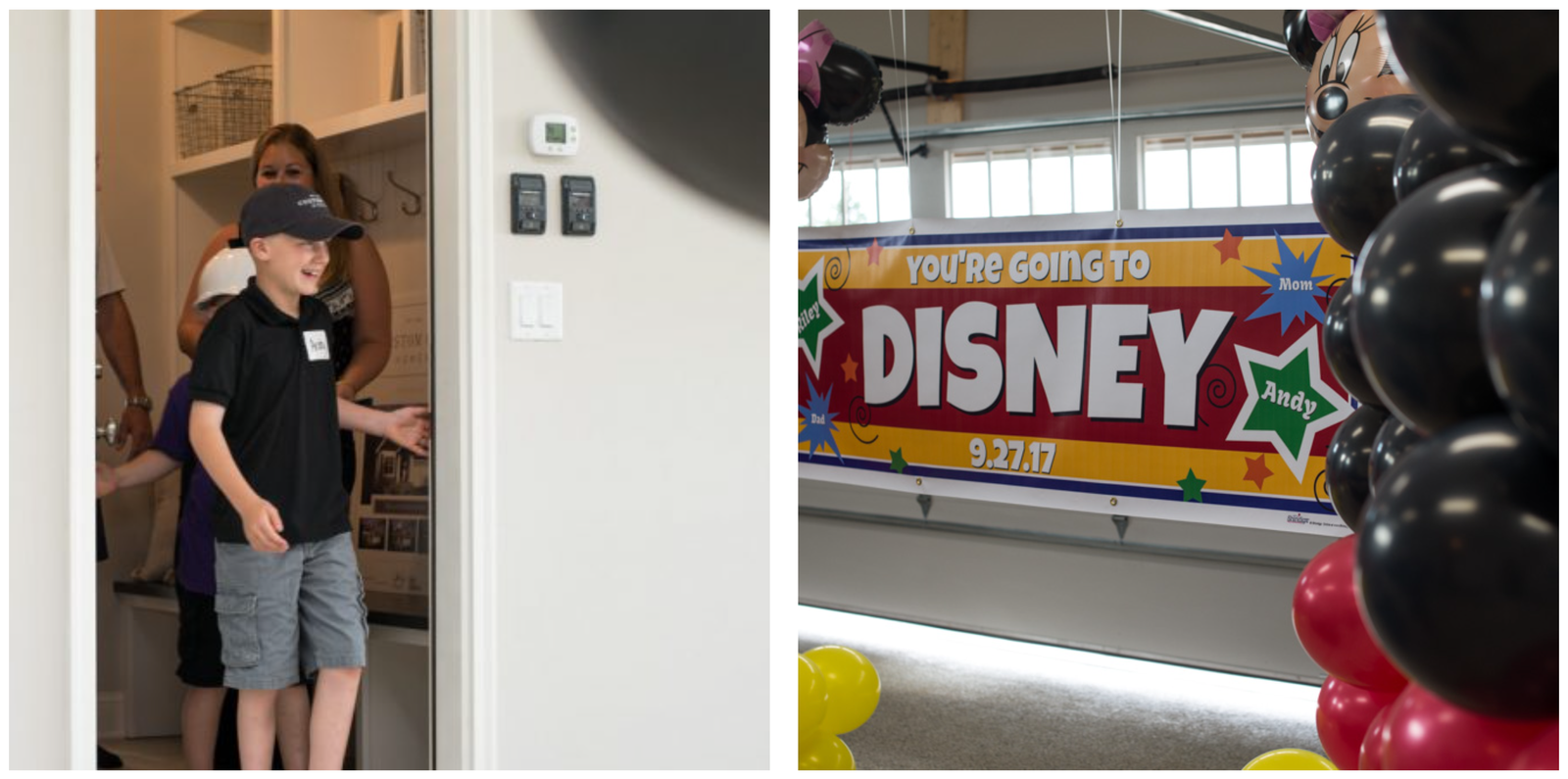 In cahoots with his parents and under the guise of looking at his mom’s latest work project, Custom One’s owner, Todd, recently gave Andy and his family a tour of our Luxury Home. However, instead of just getting a glimpse of the home’s garage, the excursion ended with an exciting surprise: they’re heading to Disney World! Andy is growing up with a rare, but thankfully treatable, heart disease. Although his Shone’s Complex does require careful monitoring, Andy’s parents are still determined to provide him with everyday childhood experiences.