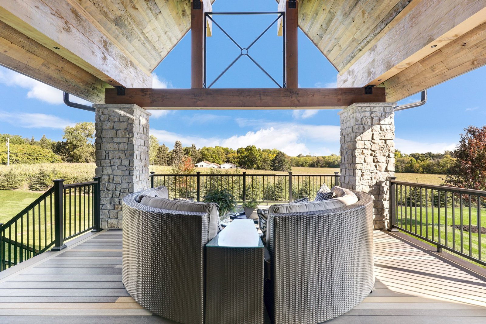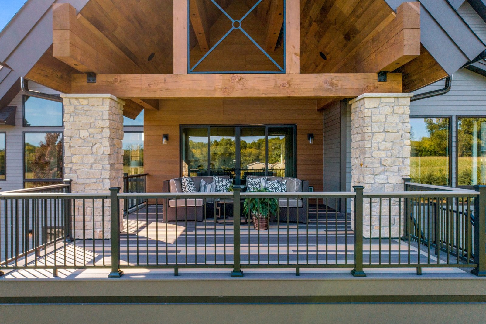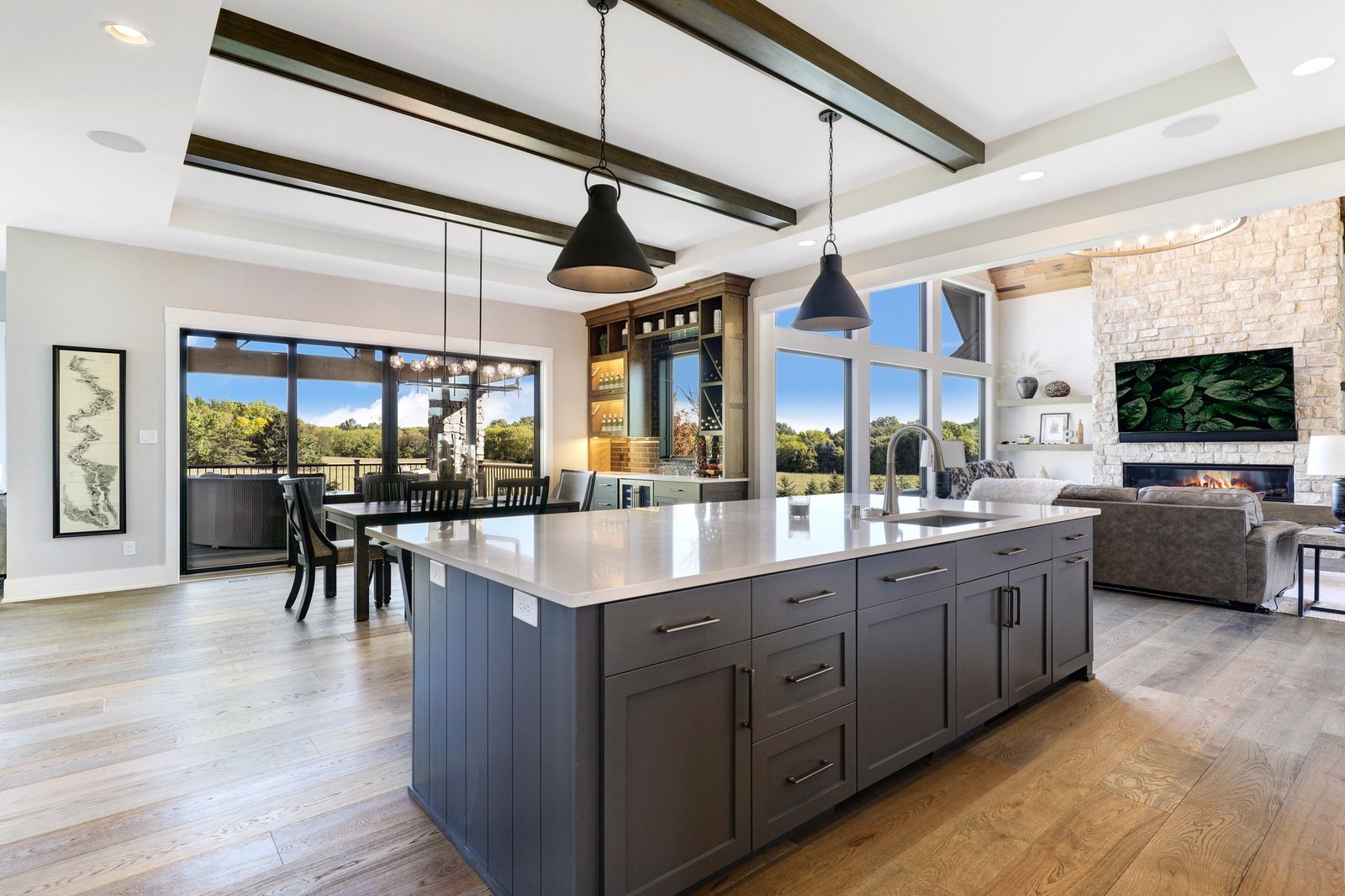 Nestled in the picturesque neighborhood of Autumn Bluff in Woodbury, this architectural gem from Custom One Homes stood out as a Dream Home in the 2021 Fall Parade of Homes. Inspired by Aspen retreats, this luxurious home is a masterpiece of custom design. The towering ceilings and expansive natural wood beams create an impressive sense of grandeur, while the generous windows flood the interior with natural light. The spacious covered deck seamlessly blends indoor and outdoor living, perfect for enjoying Minnesota’s seasons in comfort.