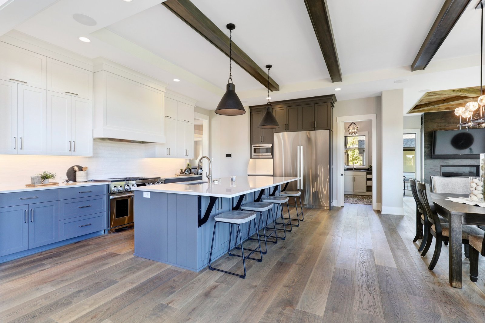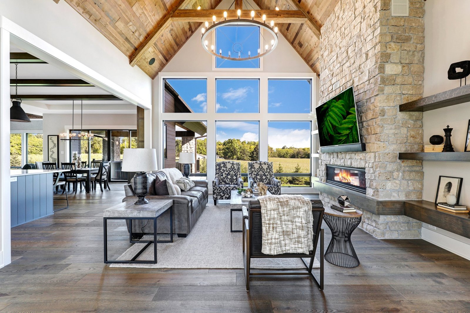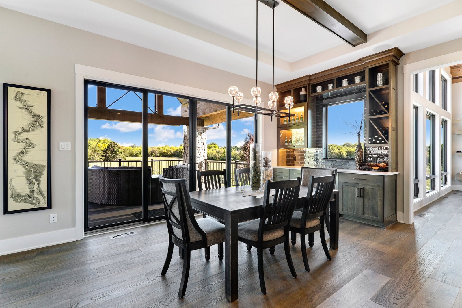 Nestled in the picturesque neighborhood of Autumn Bluff in Woodbury, this architectural gem from Custom One Homes stood out as a Dream Home in the 2021 Fall Parade of Homes. Inspired by Aspen retreats, this luxurious home is a masterpiece of custom design. The towering ceilings and expansive natural wood beams create an impressive sense of grandeur, while the generous windows flood the interior with natural light. The spacious covered deck seamlessly blends indoor and outdoor living, perfect for enjoying Minnesota’s seasons in comfort.