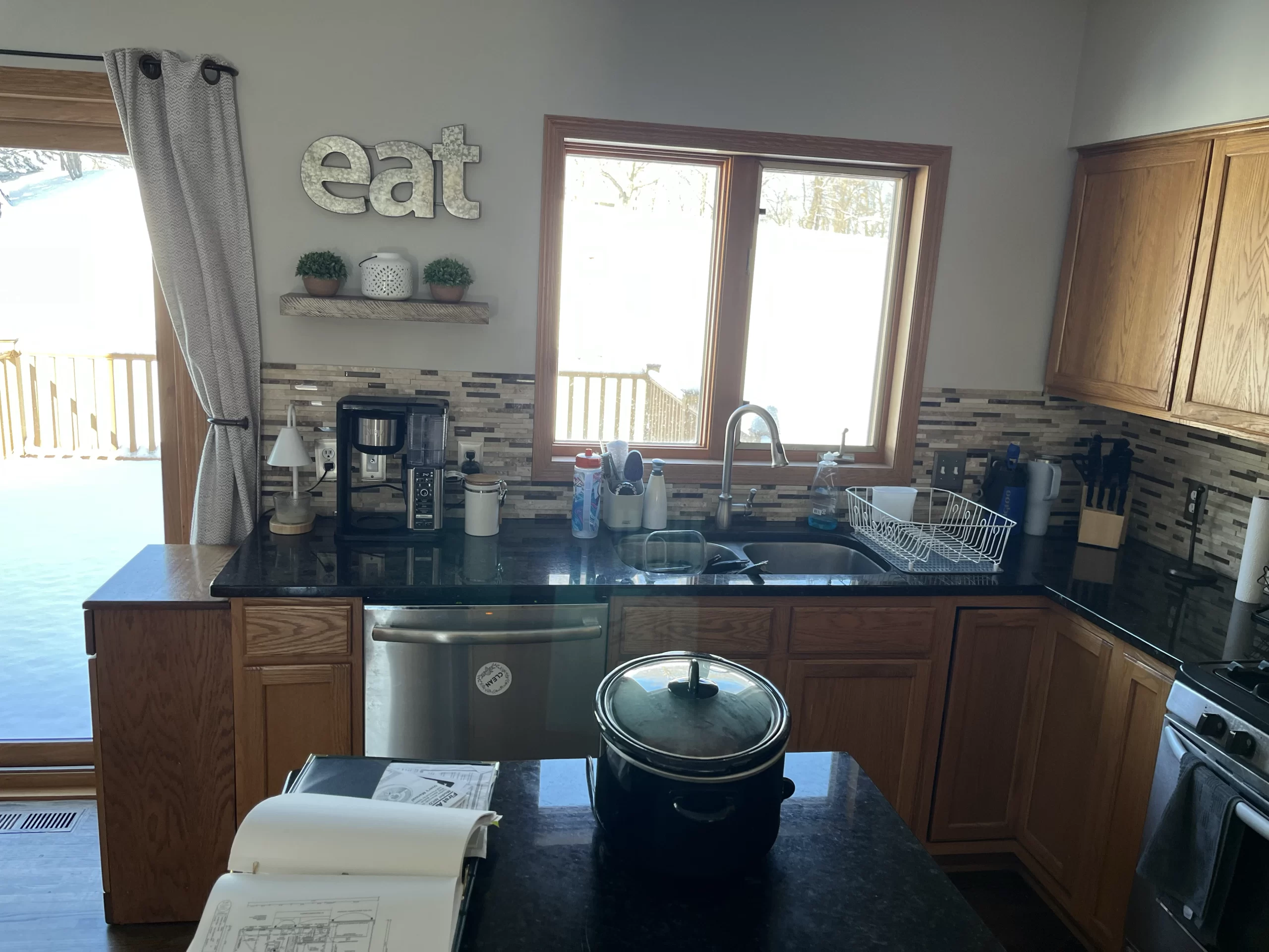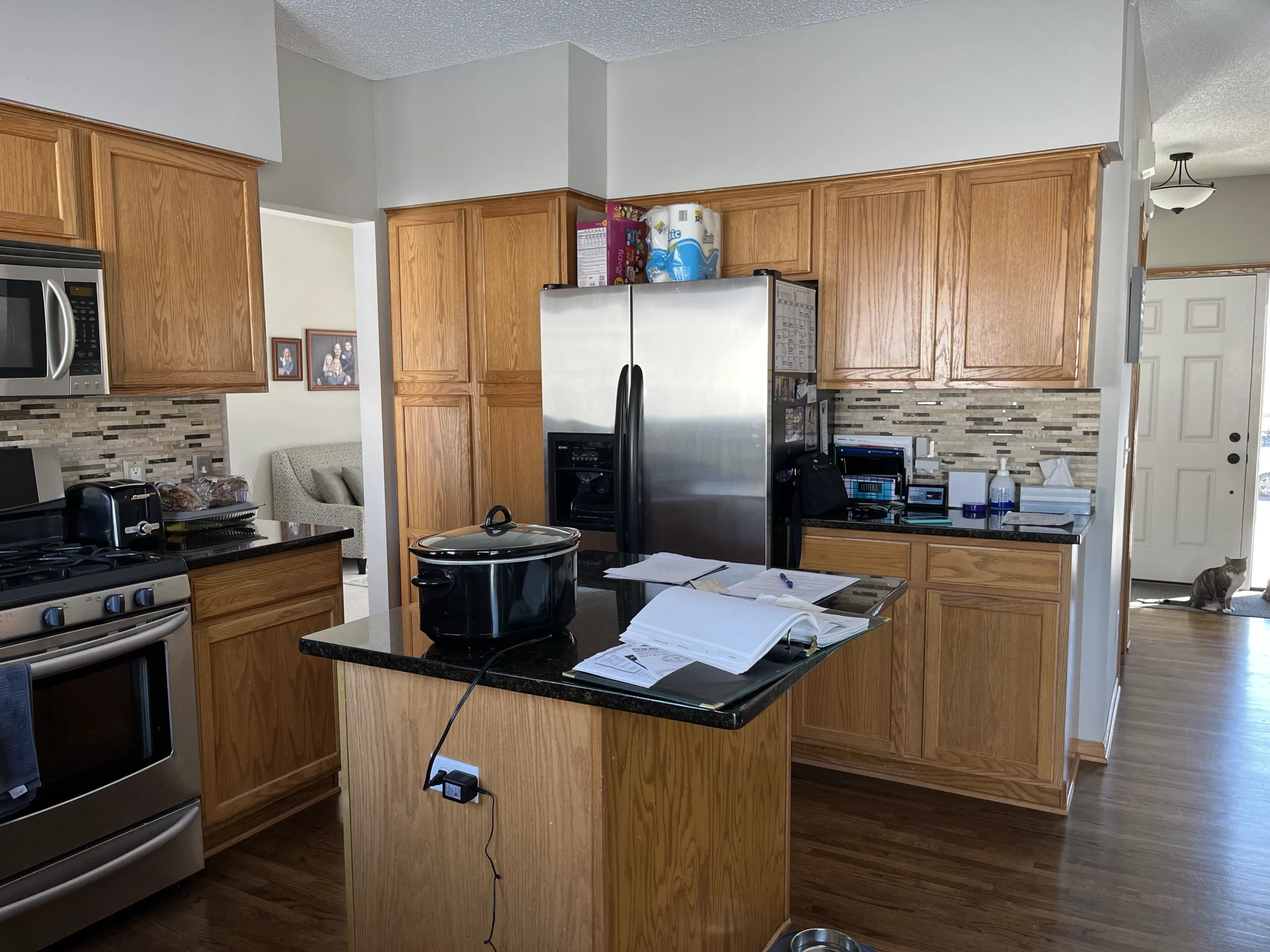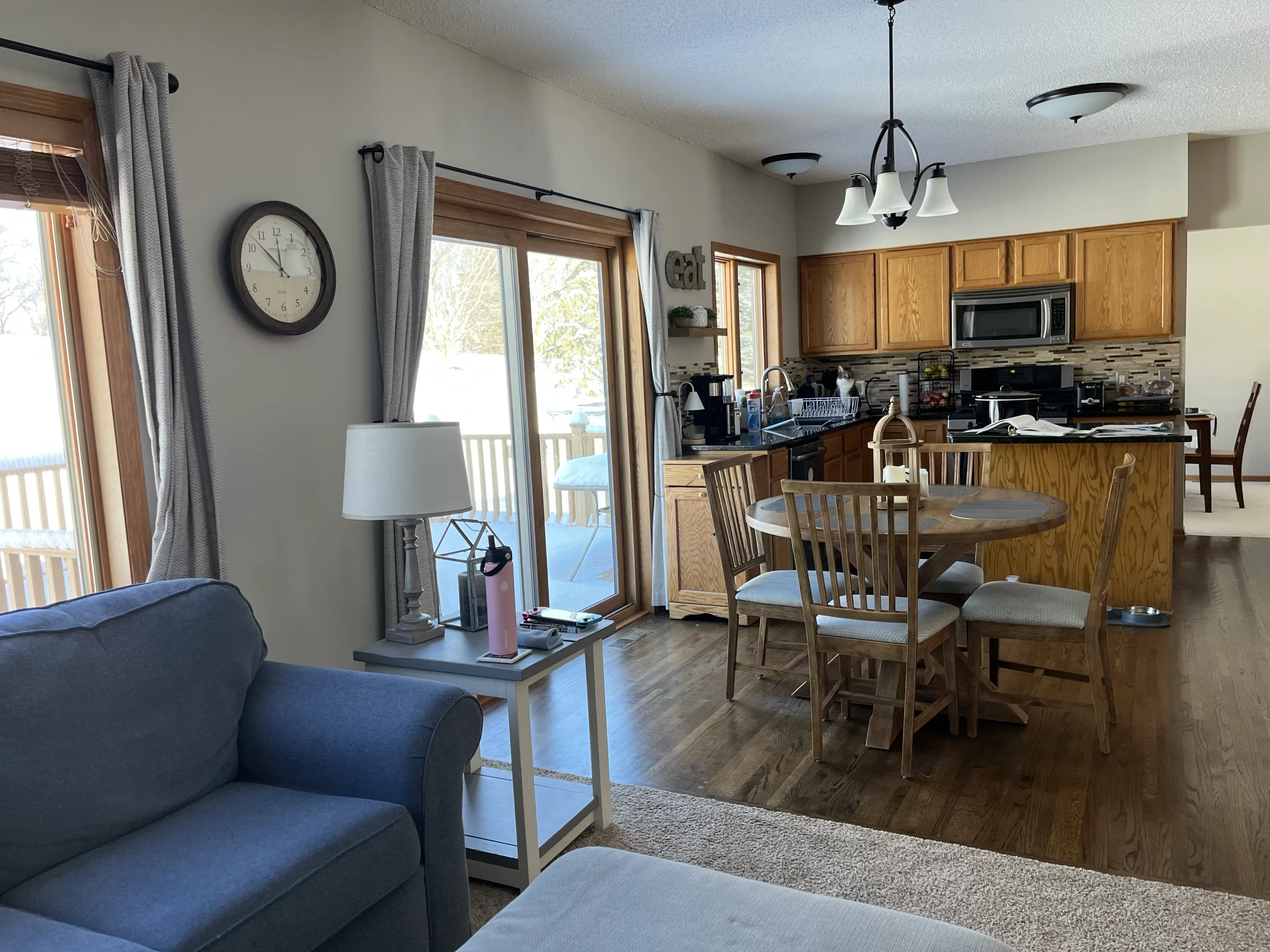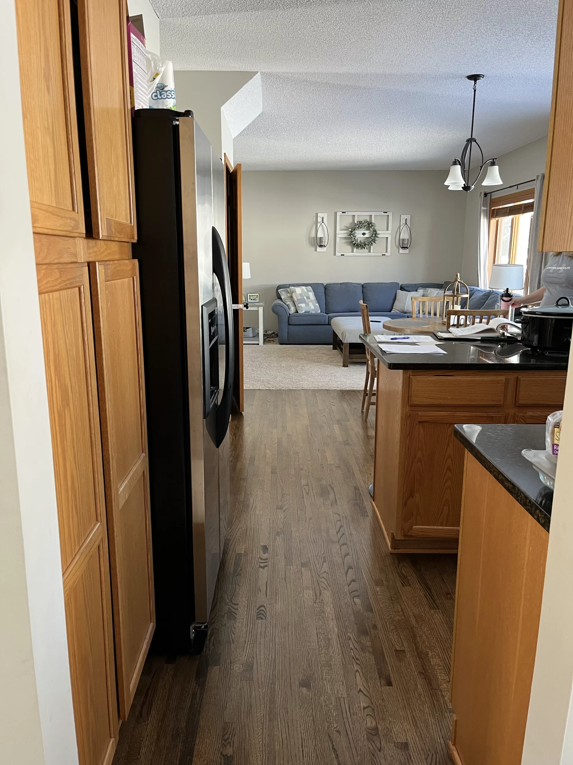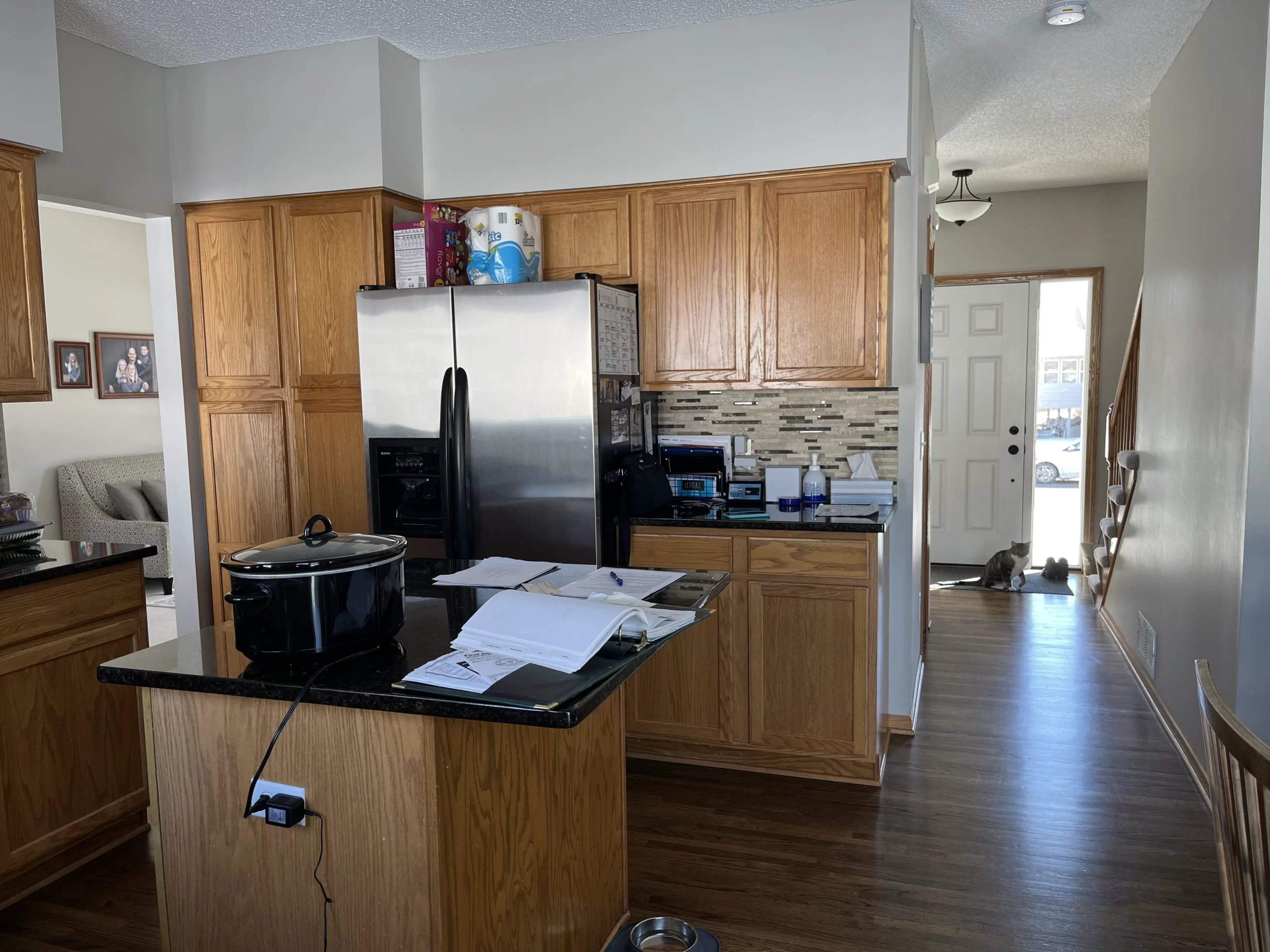 In the kitchen, a built-in hutch was removed to make room for a sleek coffee bar. This feature adds both style and function, perfect for everyday use. Light finishes and a wider opening to the dinette made the entire area feel more connected and spacious. Modern appliances, a large island, and elegant pendant lights complete the transformation, making it an ideal gathering space for family and friends.