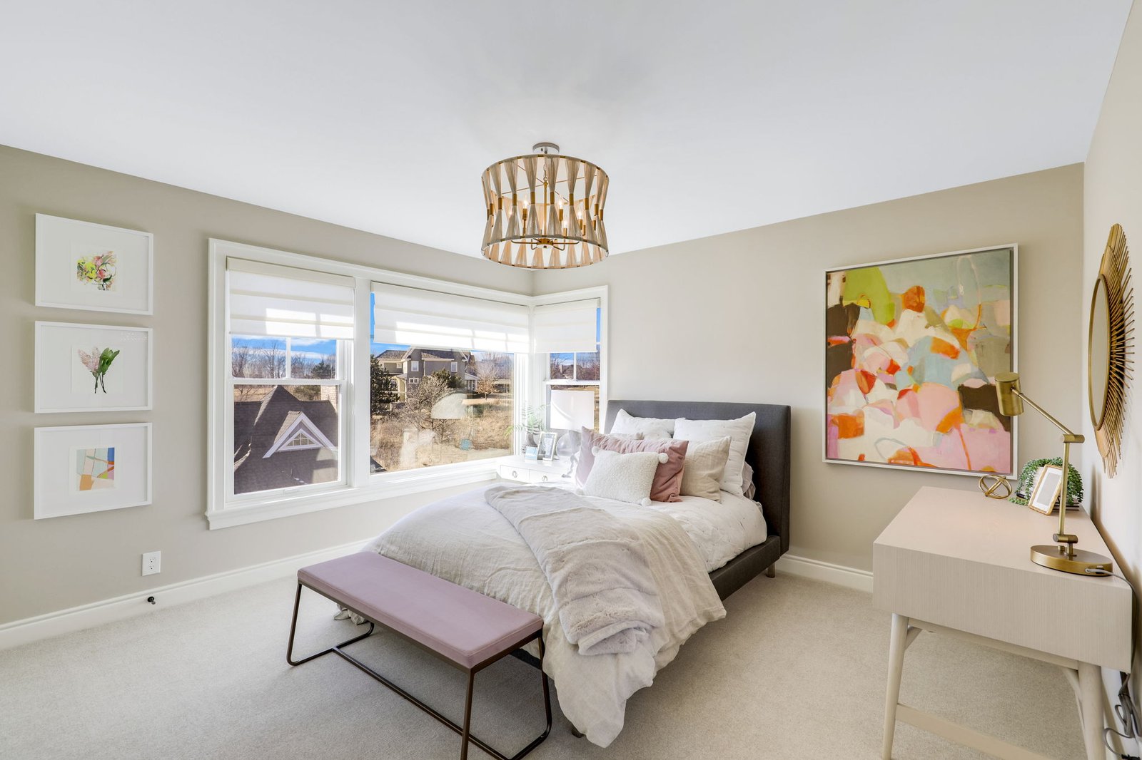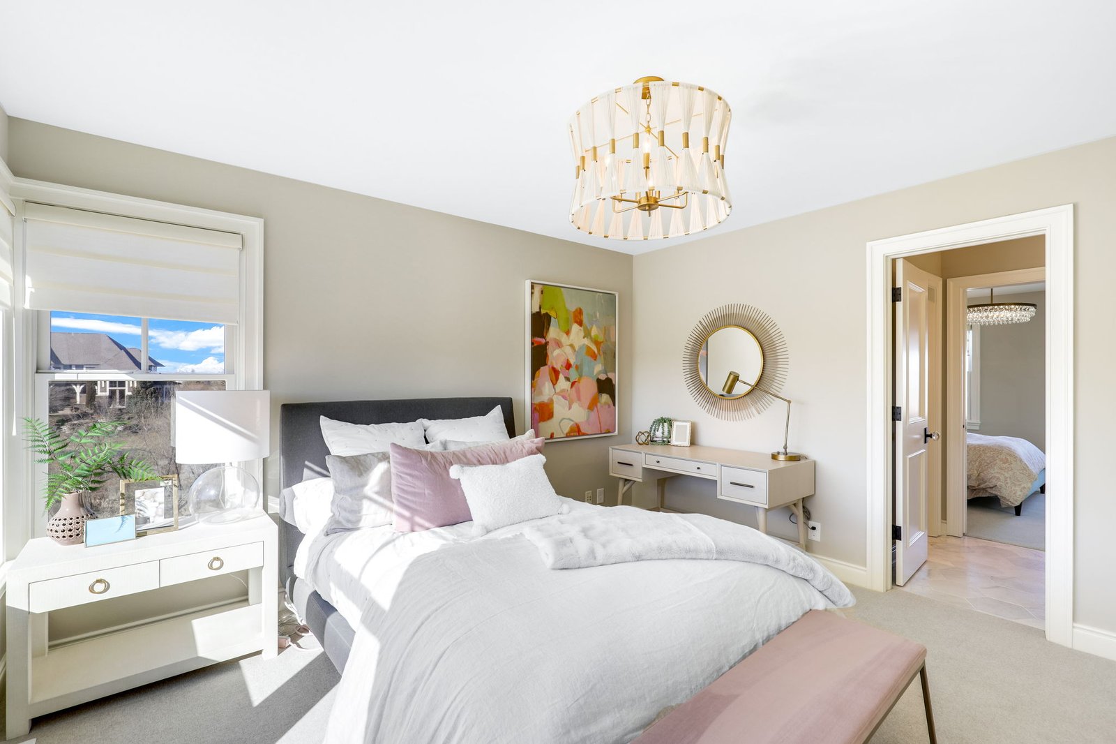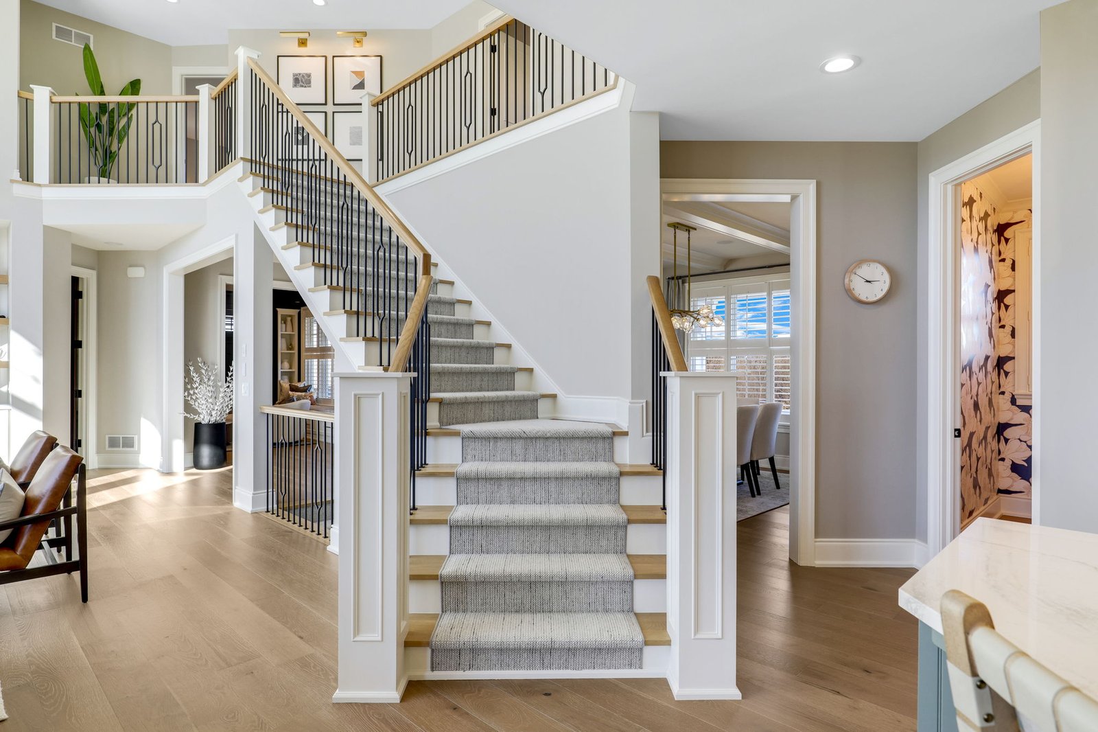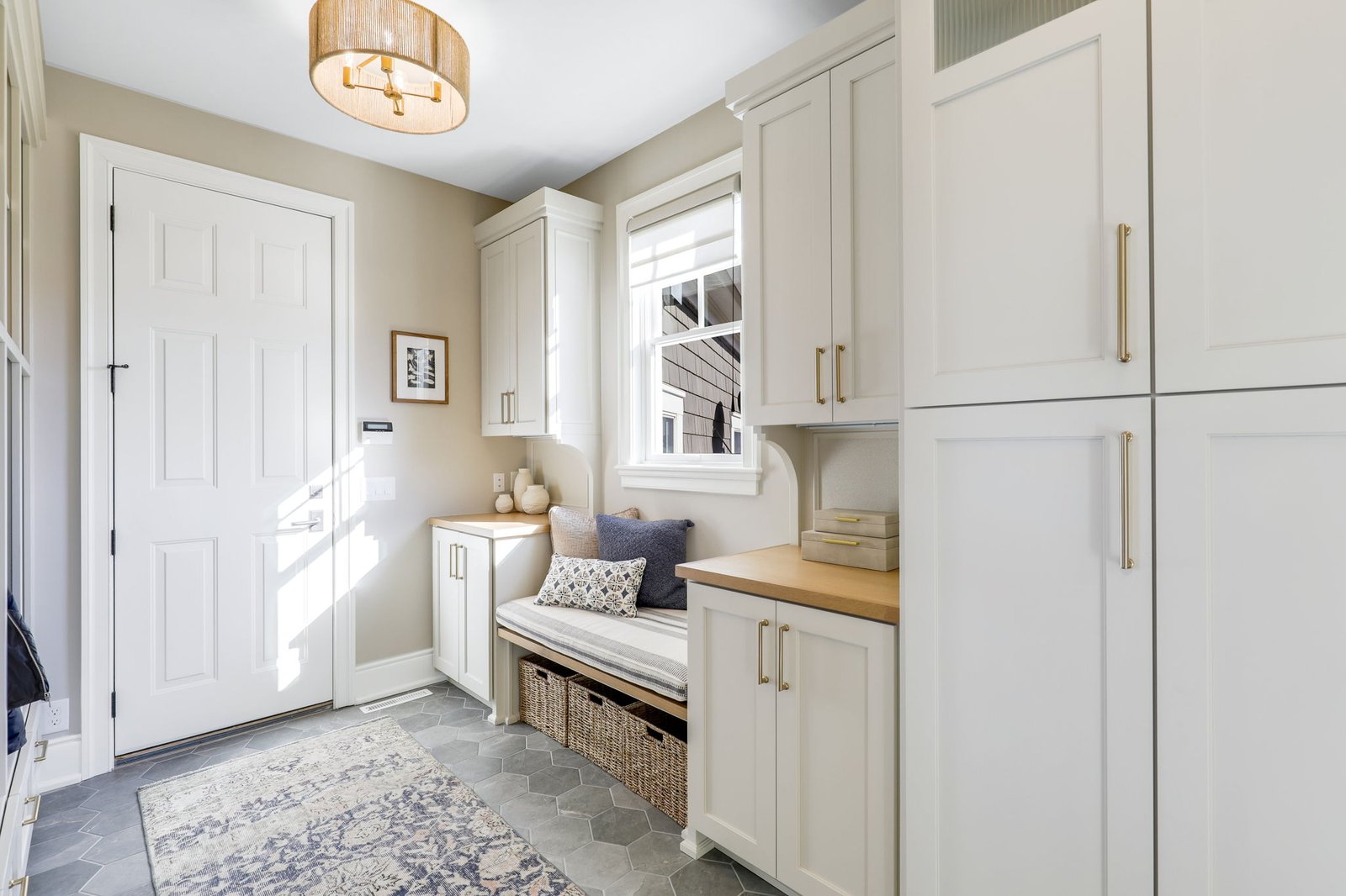 The upper level received a thoughtful redesign to maximize comfort and functionality. We updated the laundry room, children’s bathrooms, bedrooms, and the Owners’ suite with a balance of classic finishes and modern features. The laundry room now includes custom cabinetry and a beautiful chandelier, adding a touch of elegance to the space.