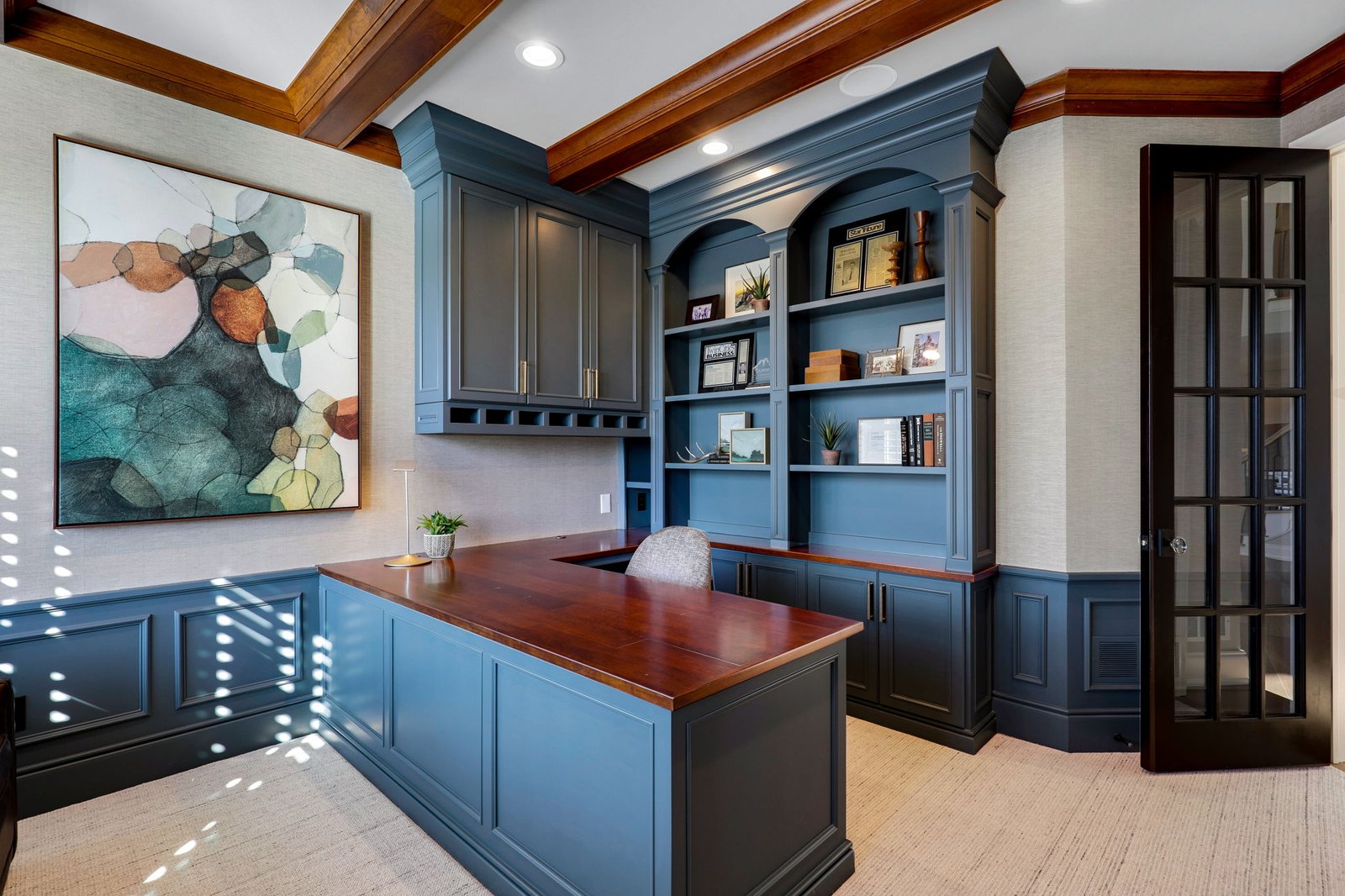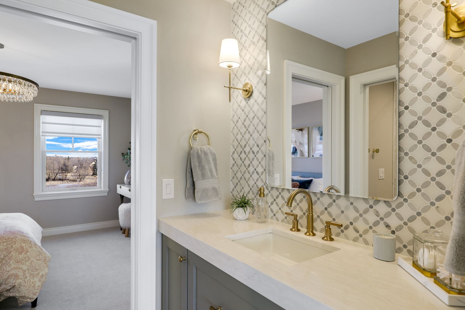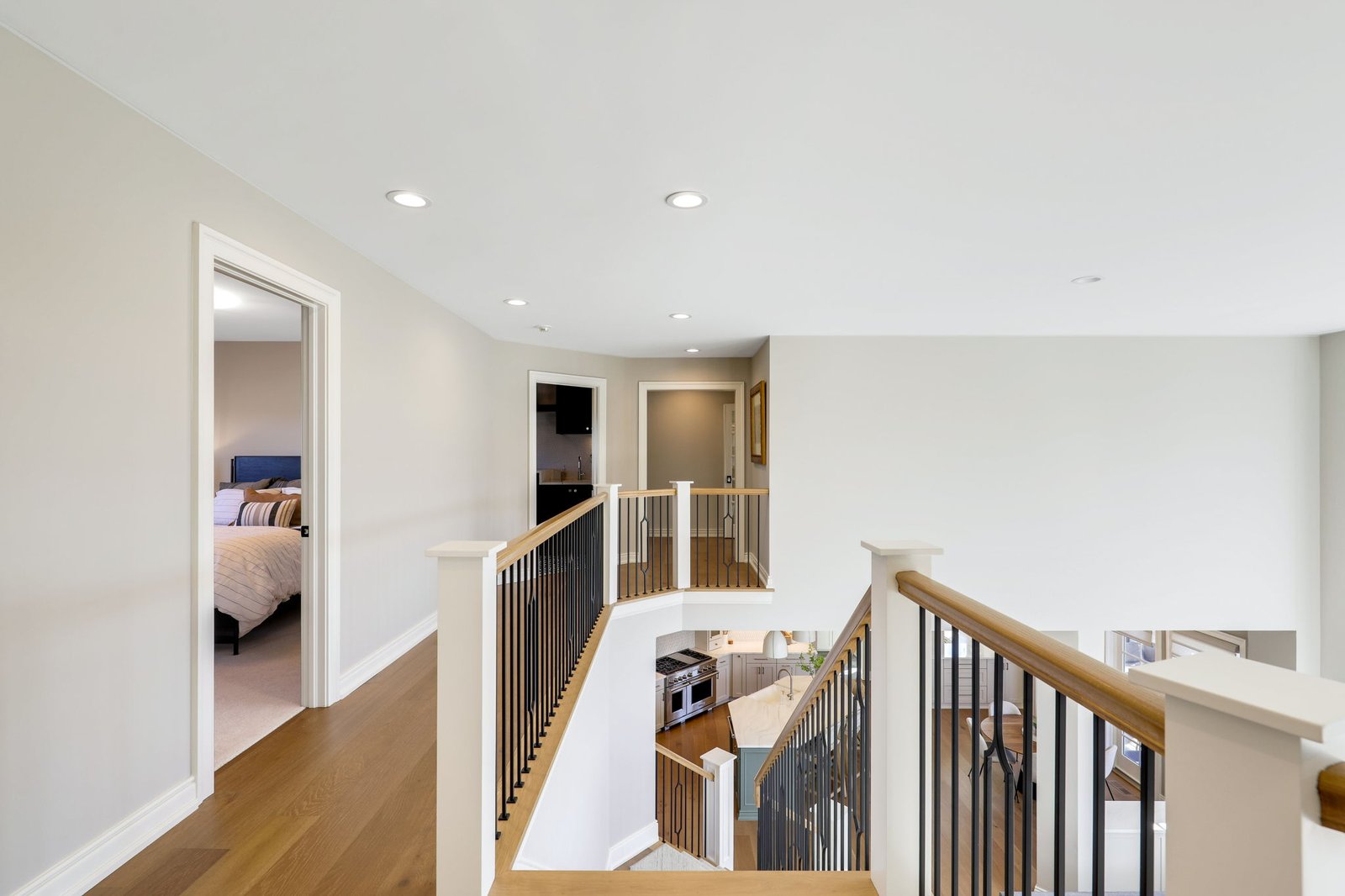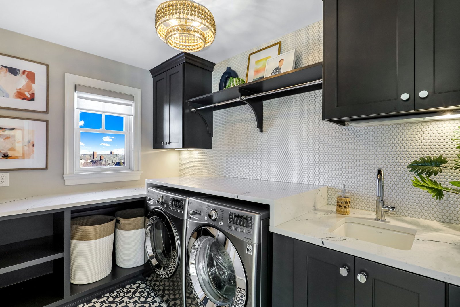 The upper level received a thoughtful redesign to maximize comfort and functionality. We updated the laundry room, children’s bathrooms, bedrooms, and the Owners’ suite with a balance of classic finishes and modern features. The laundry room now includes custom cabinetry and a beautiful chandelier, adding a touch of elegance to the space.
