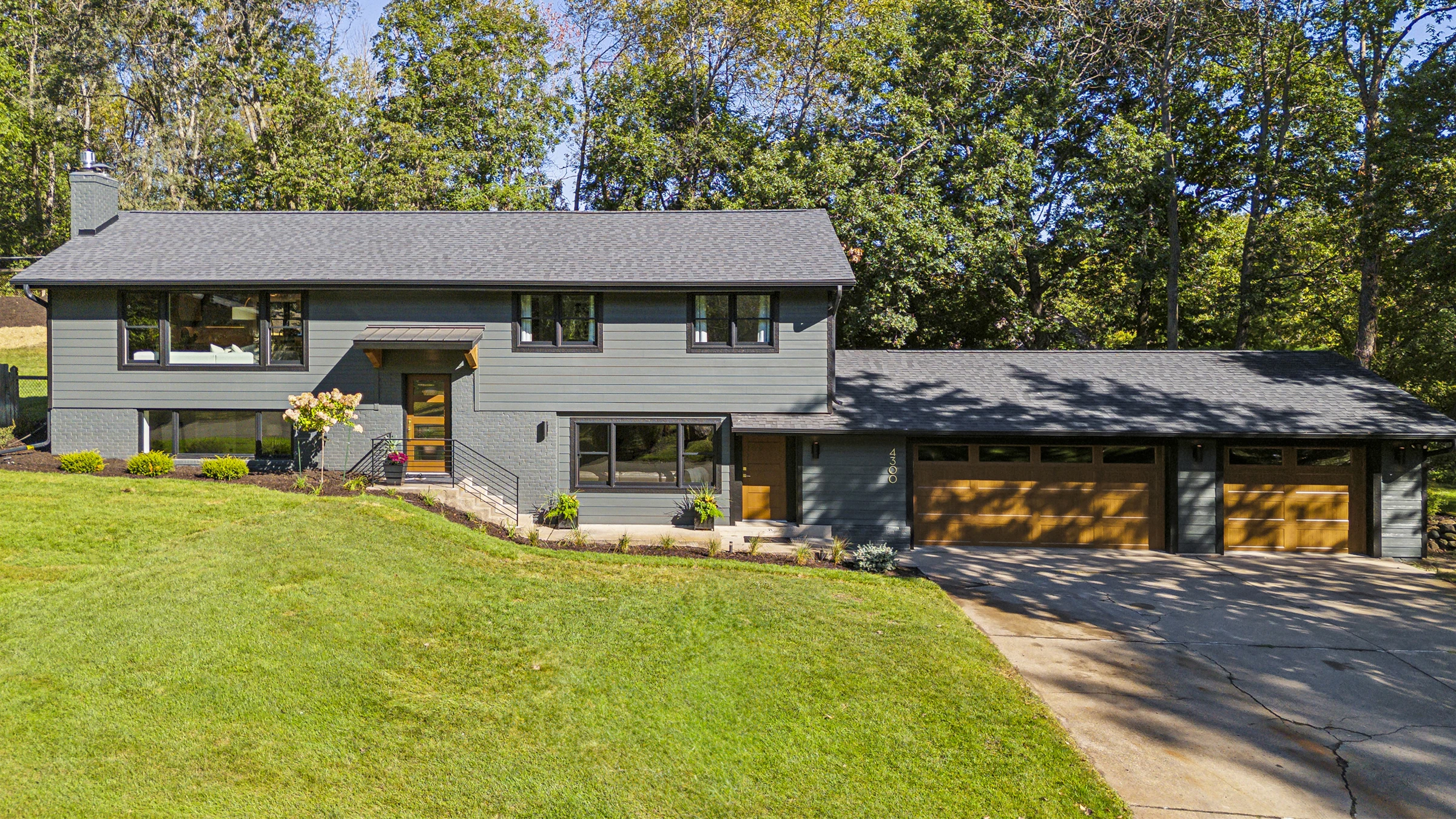 On the exterior, we gave the home a modern makeover, transitioning from a traditional facade to a sleek, contemporary look. The fresh, sophisticated color palette, paired with new contemporary garage doors, elevates the curb appeal. Andersen Windows 400 Series were installed throughout the home, maximizing natural light and blending the indoor and outdoor spaces seamlessly.
