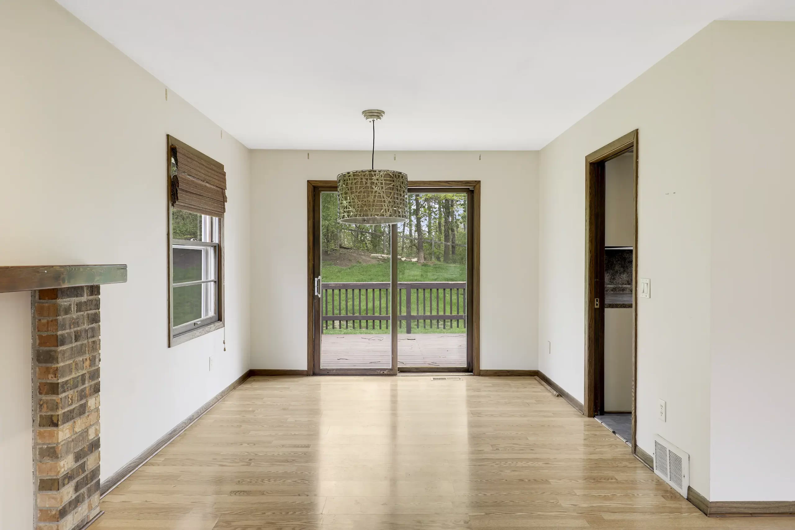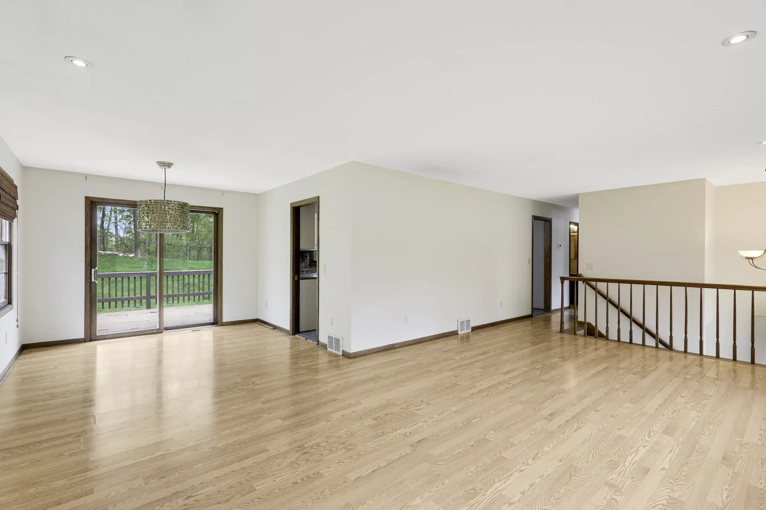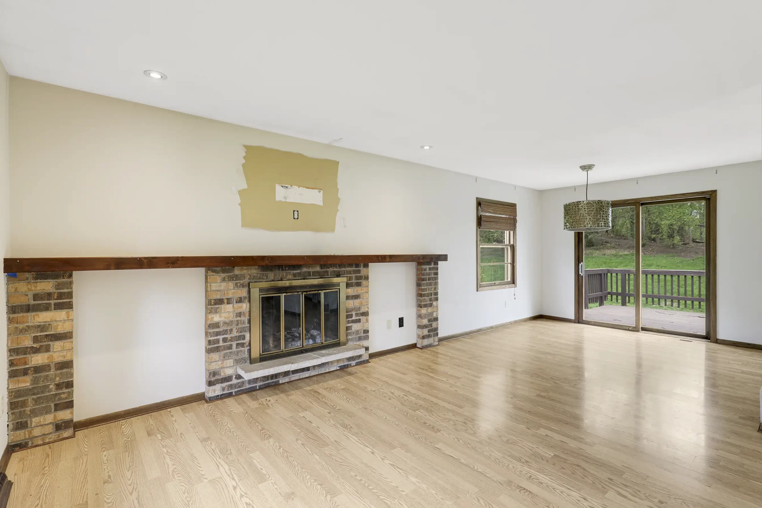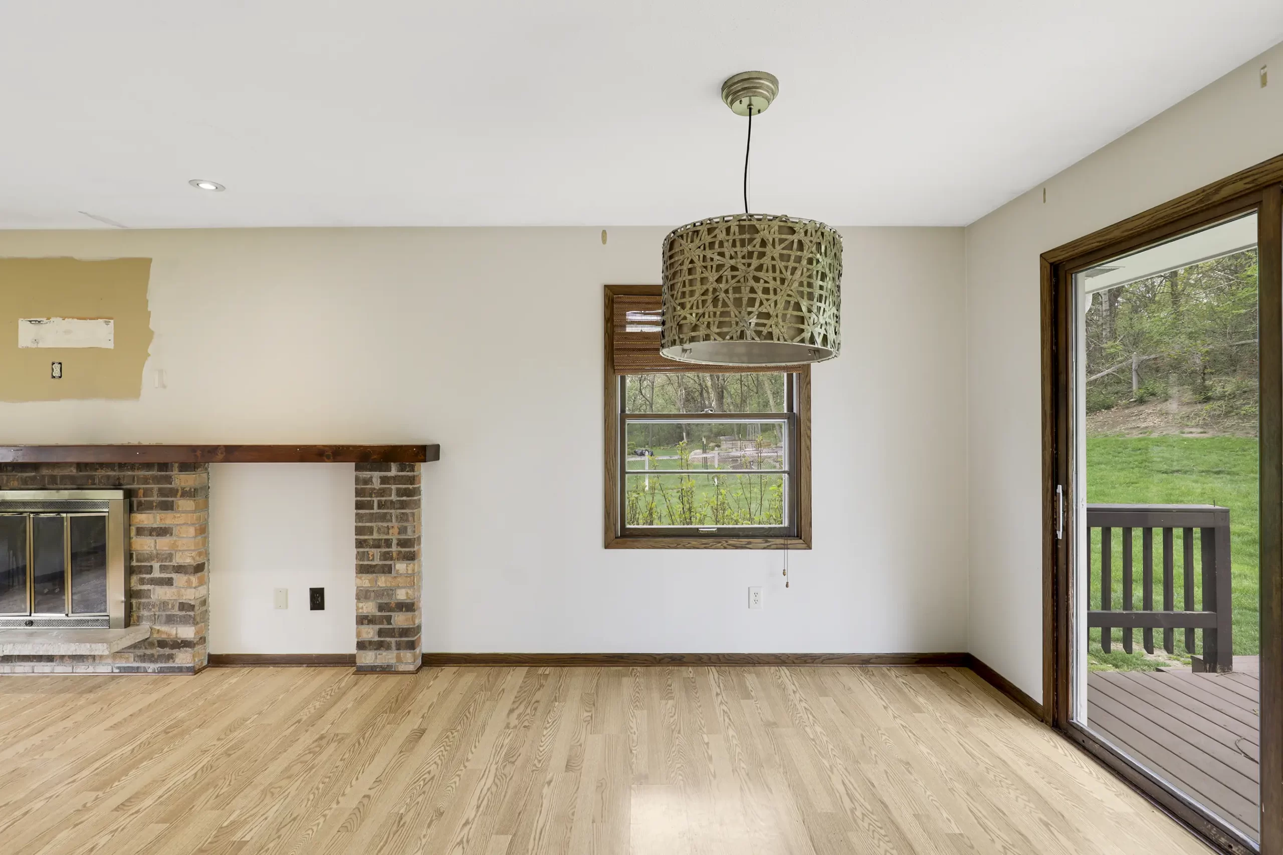 The centerpiece of this project was the complete transformation of the main level. By removing a load-bearing wall, we opened up the kitchen, living, and dining areas, allowing for a seamless flow between the spaces. The ceiling was vaulted by removing the roof and trusses, creating a grand, airy environment. The kitchen renovation is a true highlight, featuring a Wolf 48″ Gas Range with 6 Burners and Infrared Griddle, part of a high-end pro-series appliance package that delivers both functionality and style. The space also includes a multi-purpose bar service area and direct access to the new deck, making it perfect for hosting and entertaining.