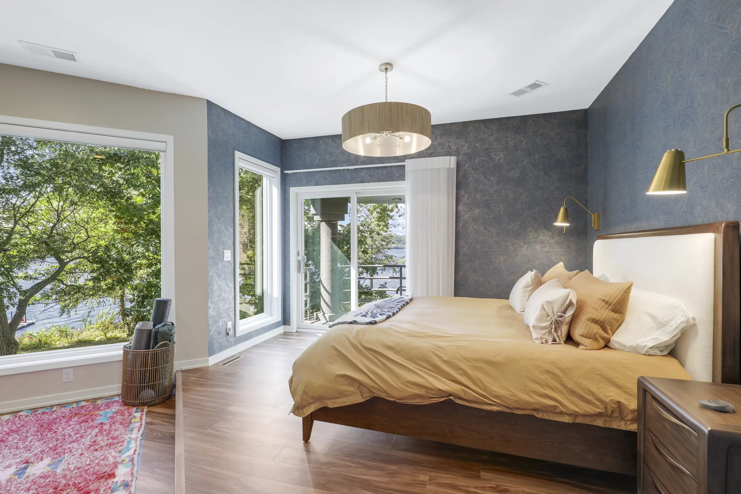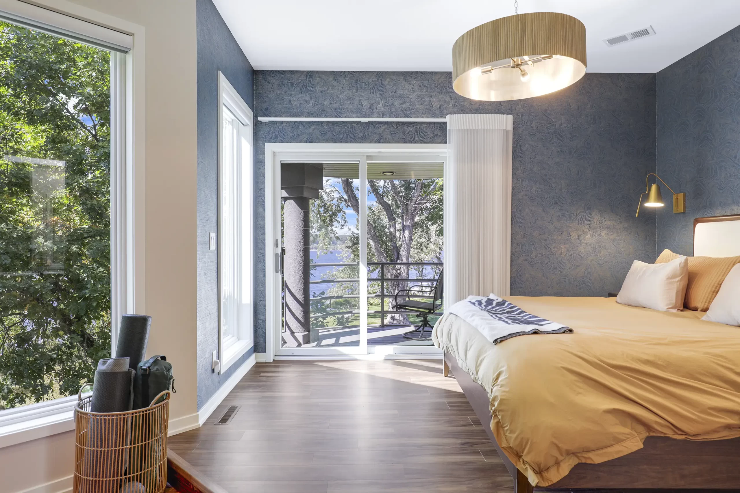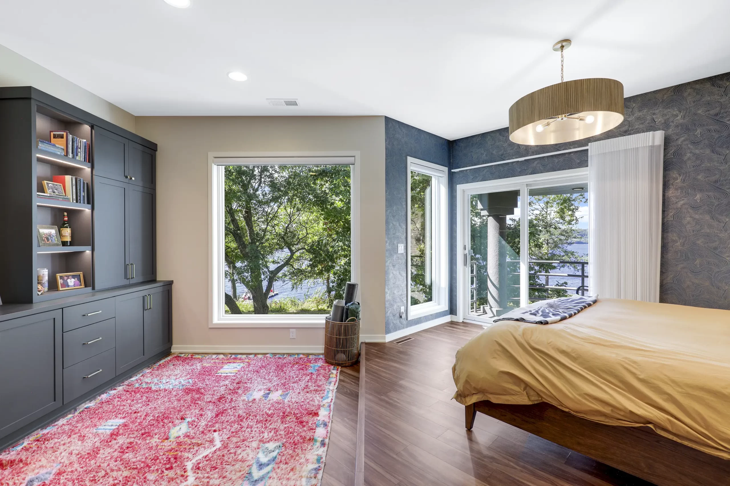 The Modern Riverfront Renewal project in Hudson, WI, completed by Custom One Renovation, featured a stunning transformation of the Owner’s Suite, encompassing the bedroom, bathroom, seating area, and closet. This Hudson renovation project focused on creating a more open and contemporary atmosphere, enhancing both functionality and aesthetics, while maximizing the breathtaking views of the St. Croix River.