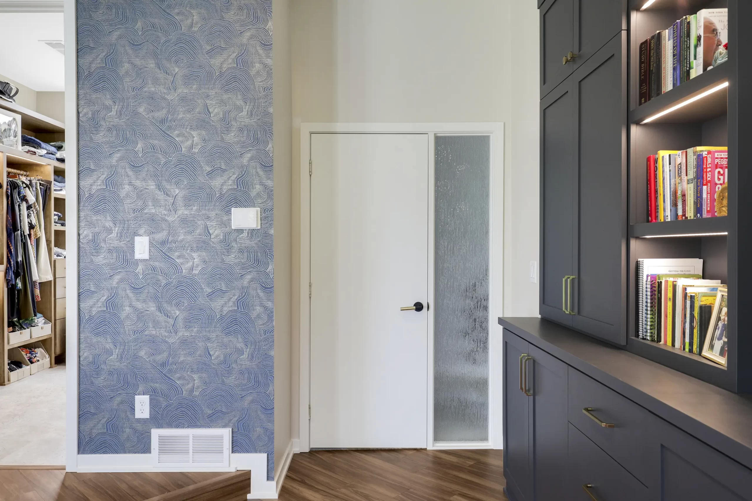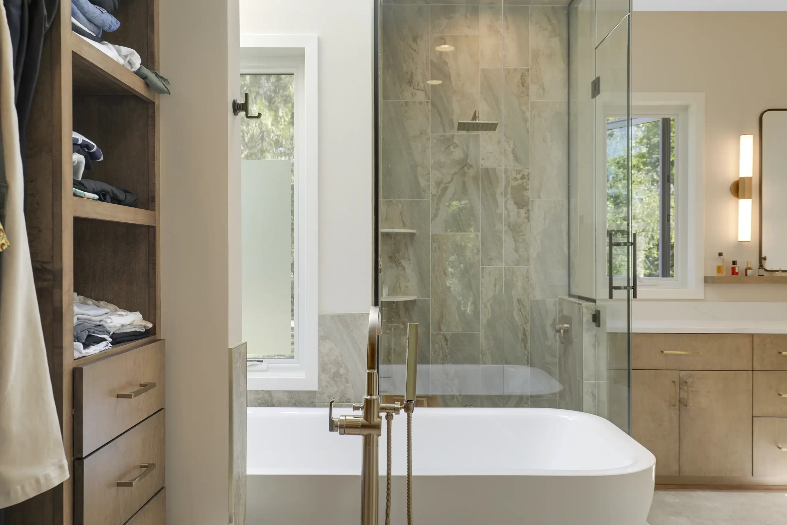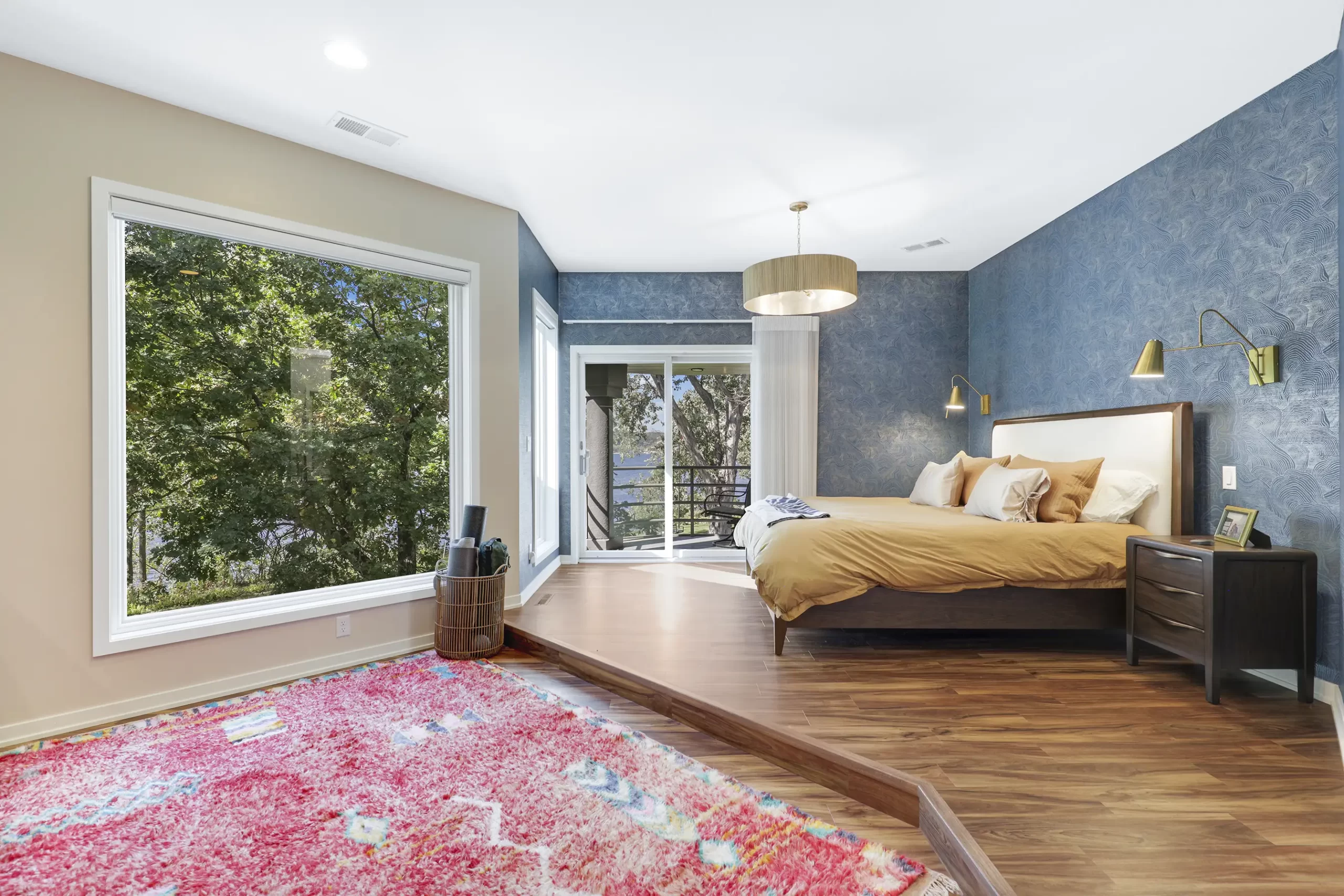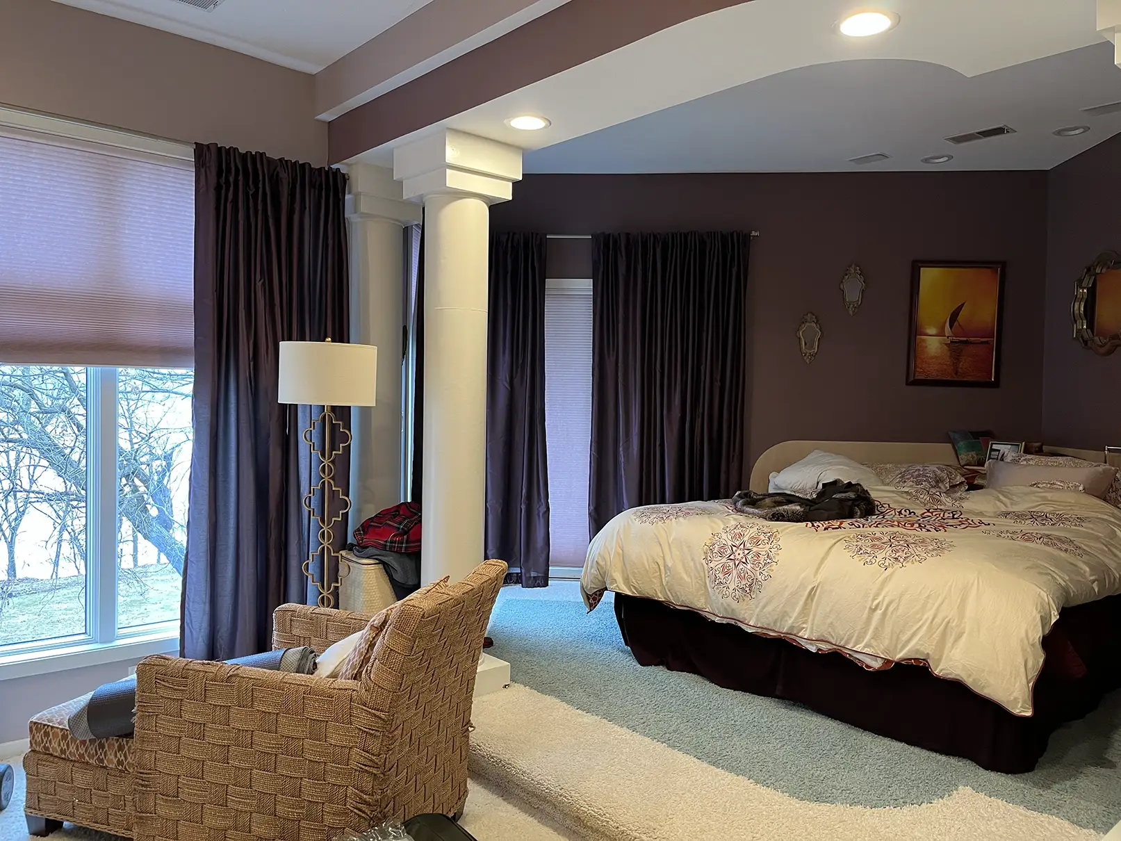 The Modern Riverfront Renewal project in Hudson, WI, completed by Custom One Renovation, featured a stunning transformation of the Owner’s Suite, encompassing the bedroom, bathroom, seating area, and closet. This Hudson renovation project focused on creating a more open and contemporary atmosphere, enhancing both functionality and aesthetics, while maximizing the breathtaking views of the St. Croix River.
