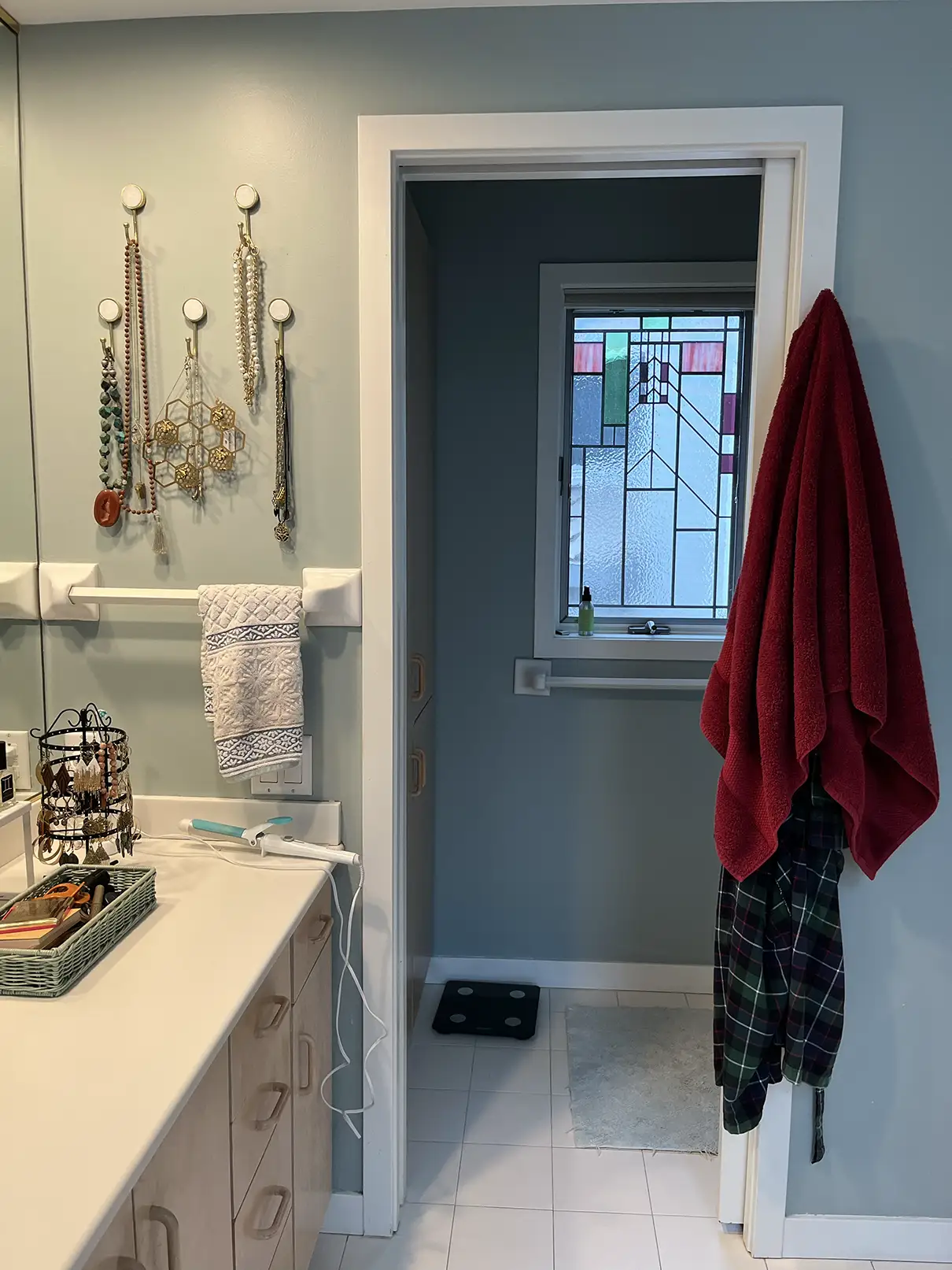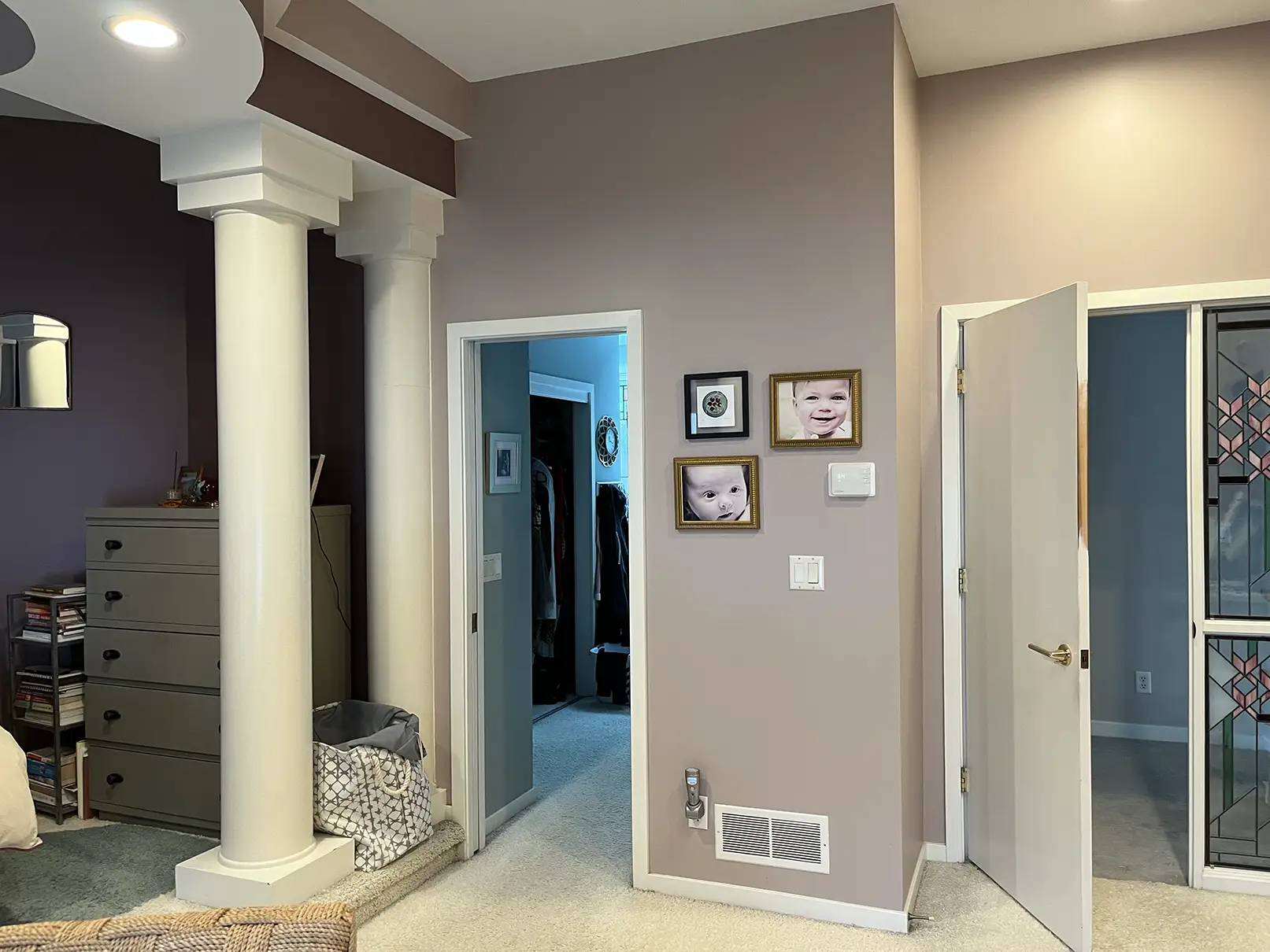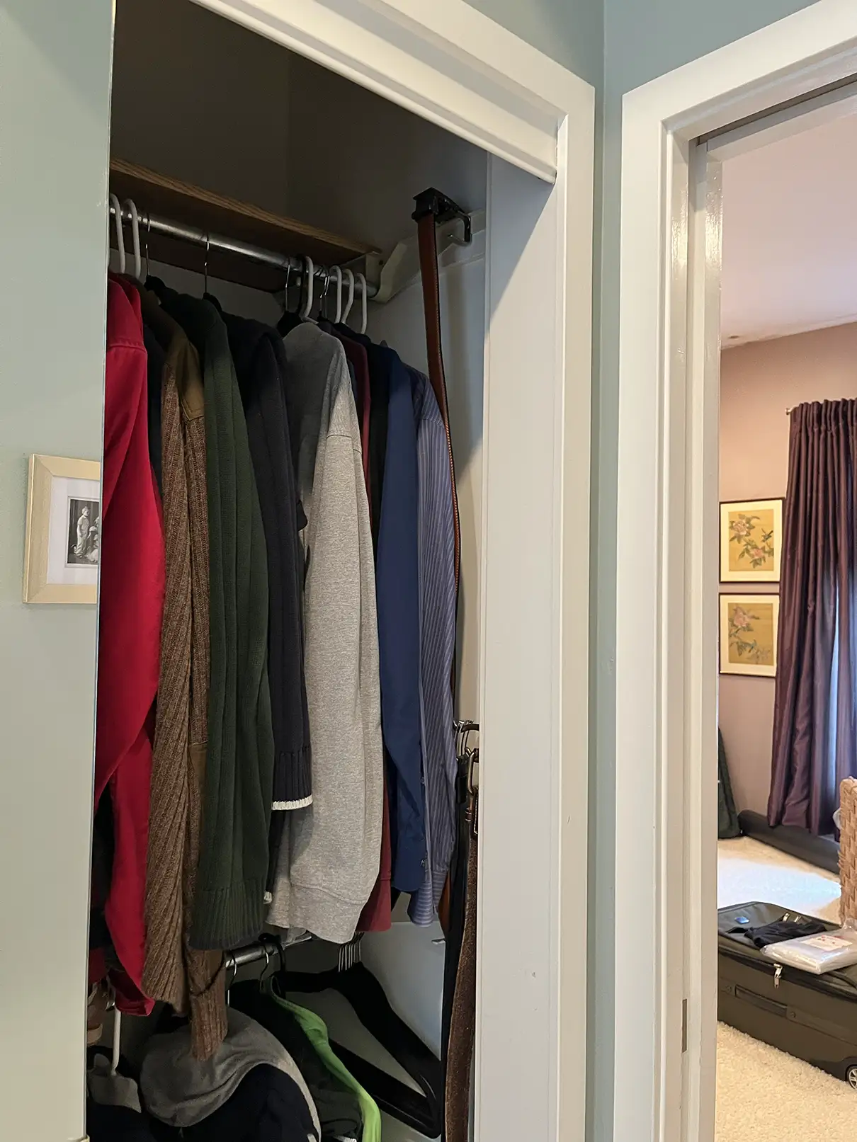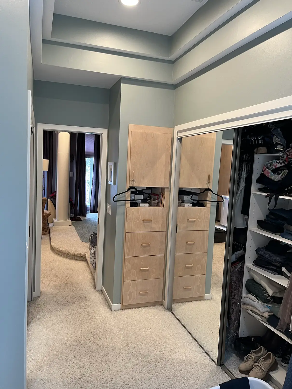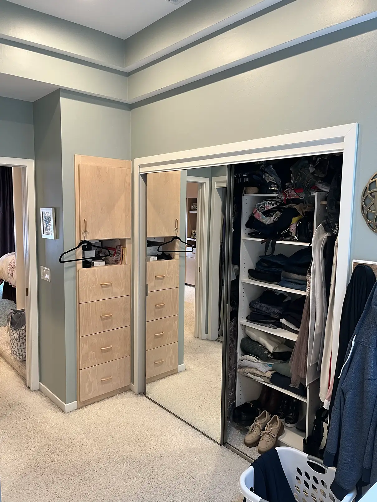 In the closet, the renovation expanded the floor space, creating a more spacious and integrated dressing area that flows naturally from the bedroom. Removing the closet doors added to the open feel of the suite, making it easier to access and utilize the space.
