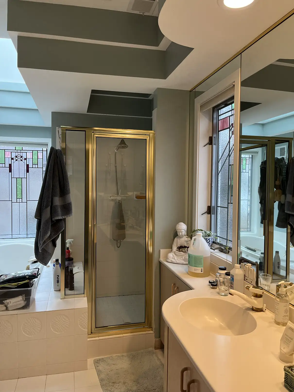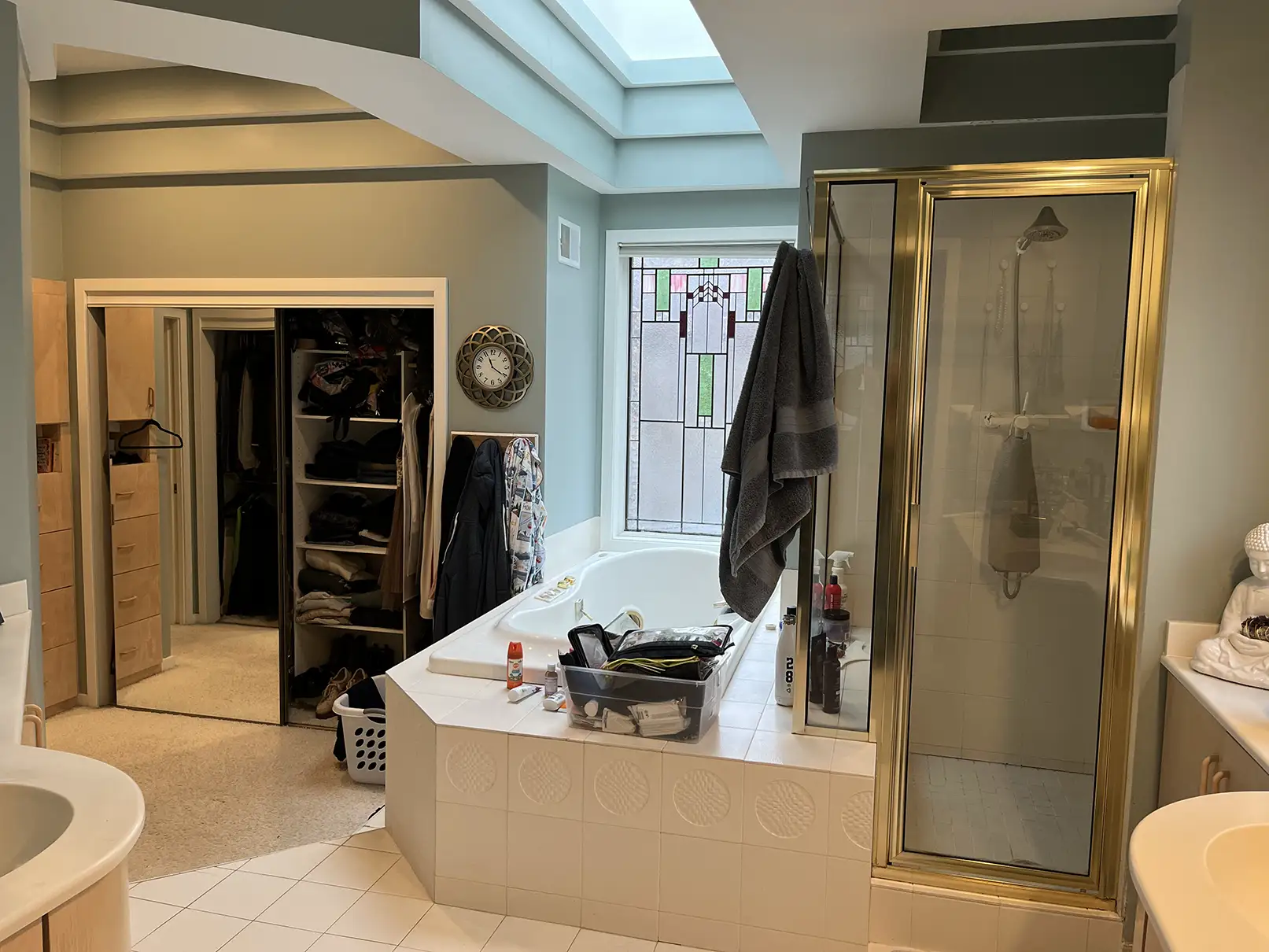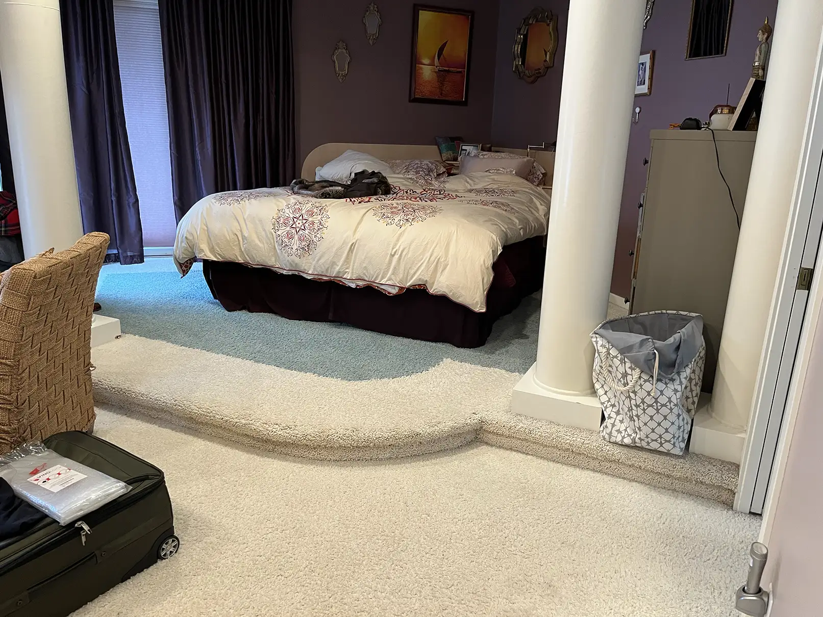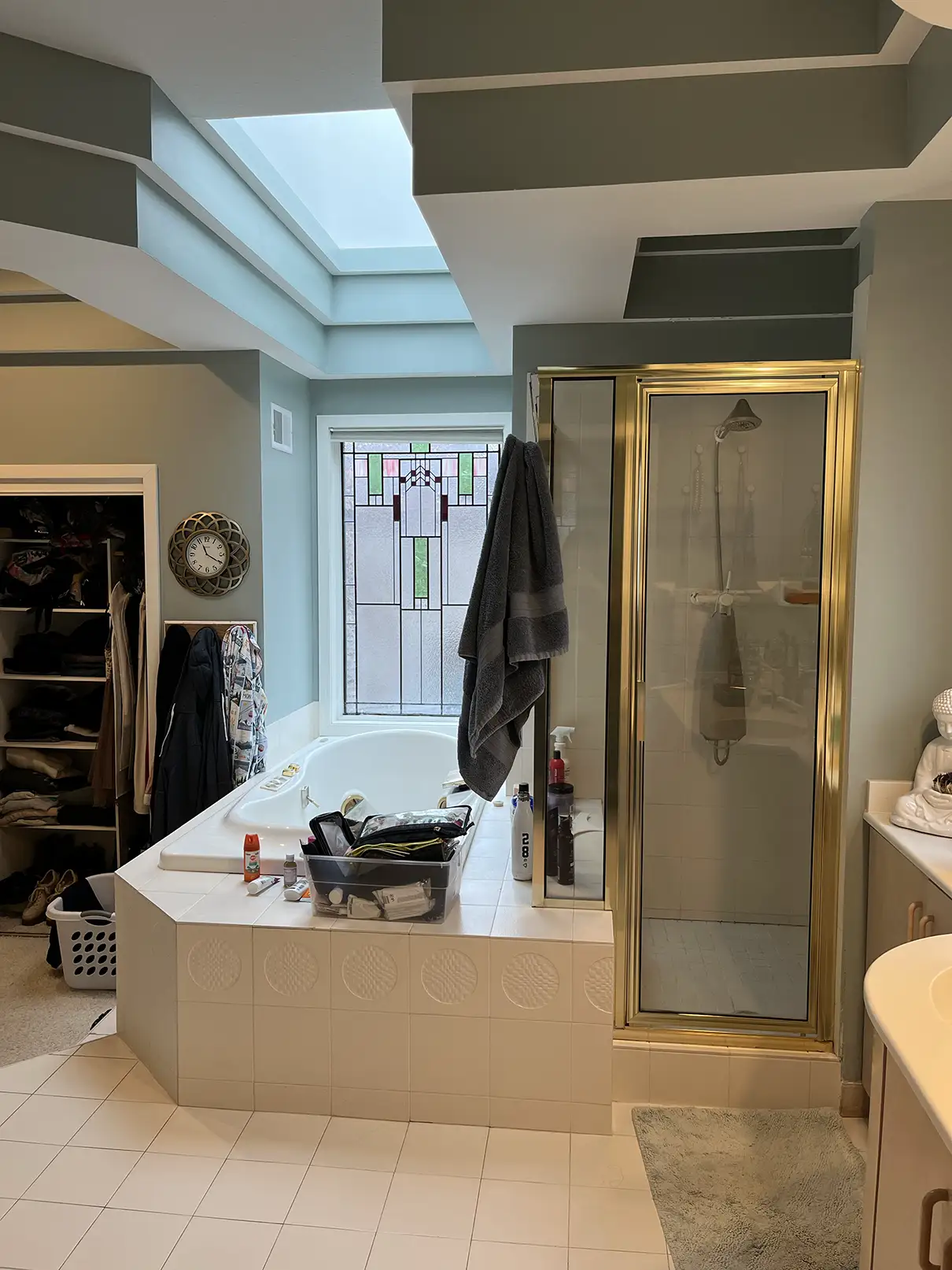 The bathroom underwent a significant transformation as well. The previous step-up design was removed, leveling the floor to create a more streamlined and accessible space. This change enhances the modern feel while providing a practical, user-friendly layout. New tile, updated plumbing fixtures, and sleek vanities further elevate the bathroom’s design.
