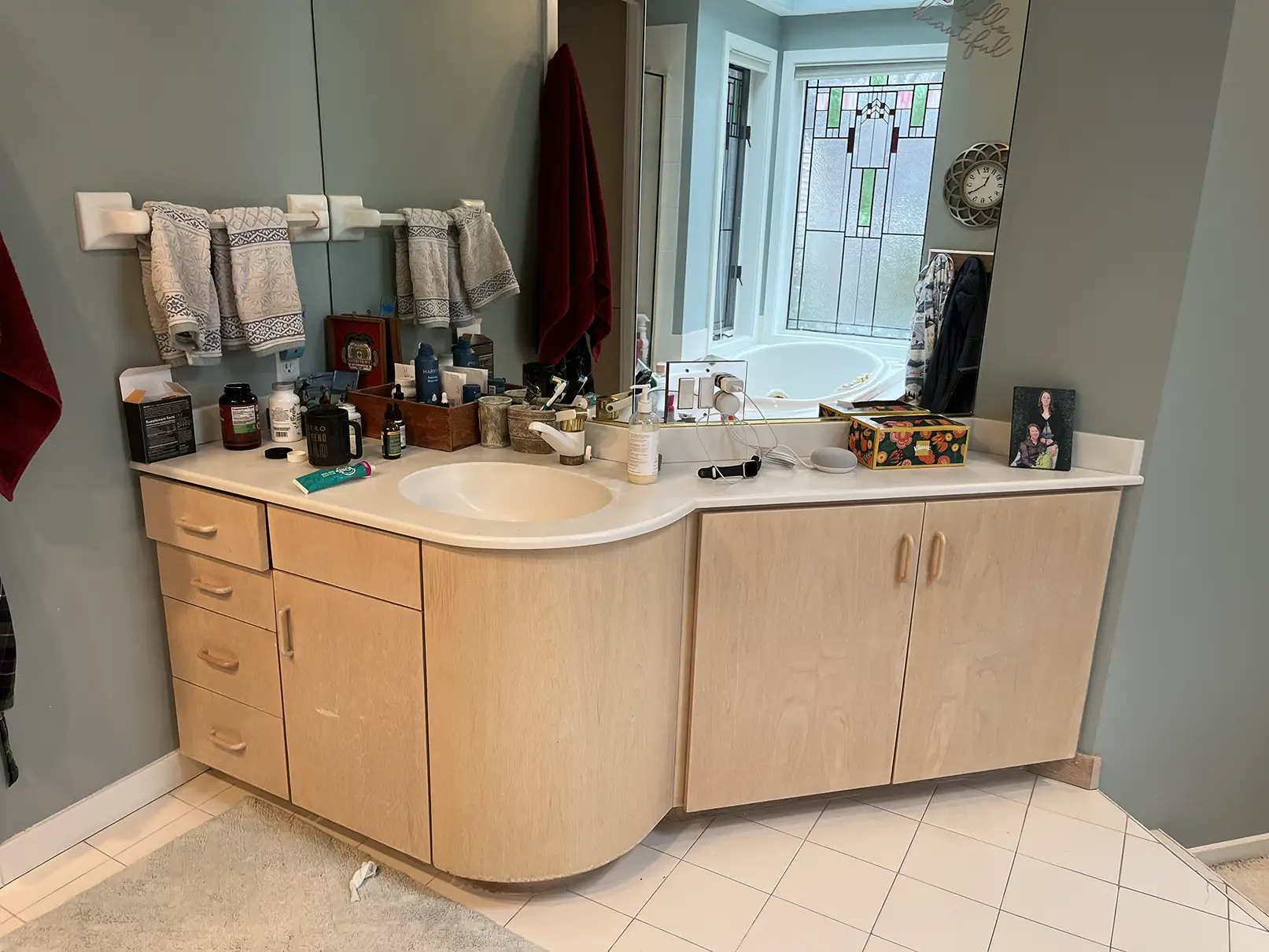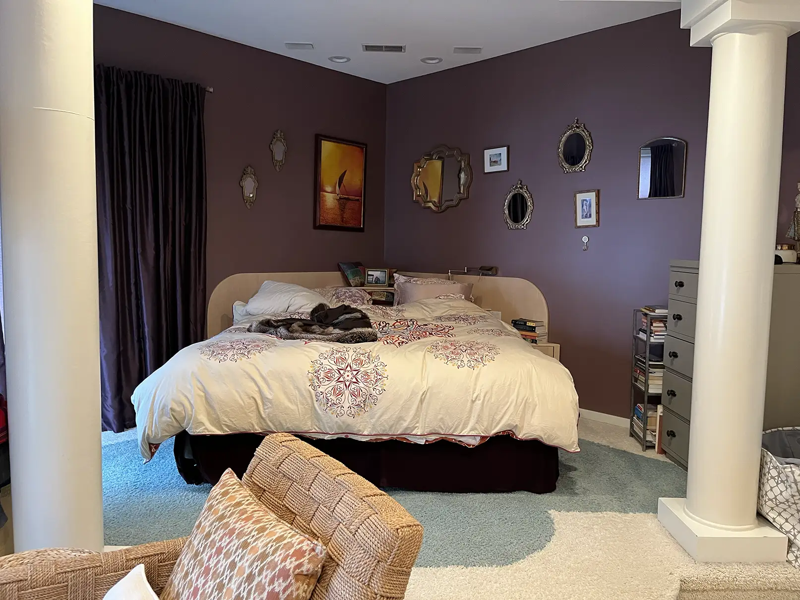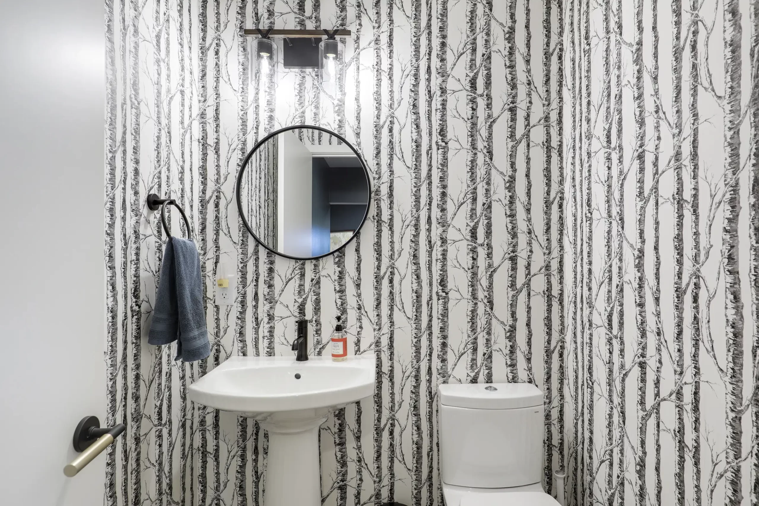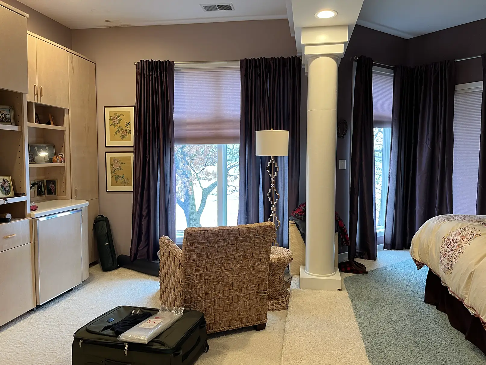 The bathroom underwent a significant transformation as well. The previous step-up design was removed, leveling the floor to create a more streamlined and accessible space. This change enhances the modern feel while providing a practical, user-friendly layout. New tile, updated plumbing fixtures, and sleek vanities further elevate the bathroom’s design.