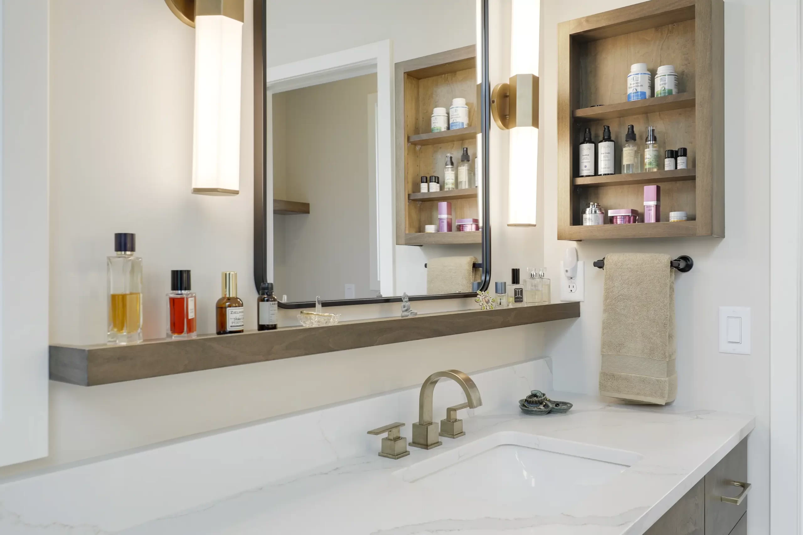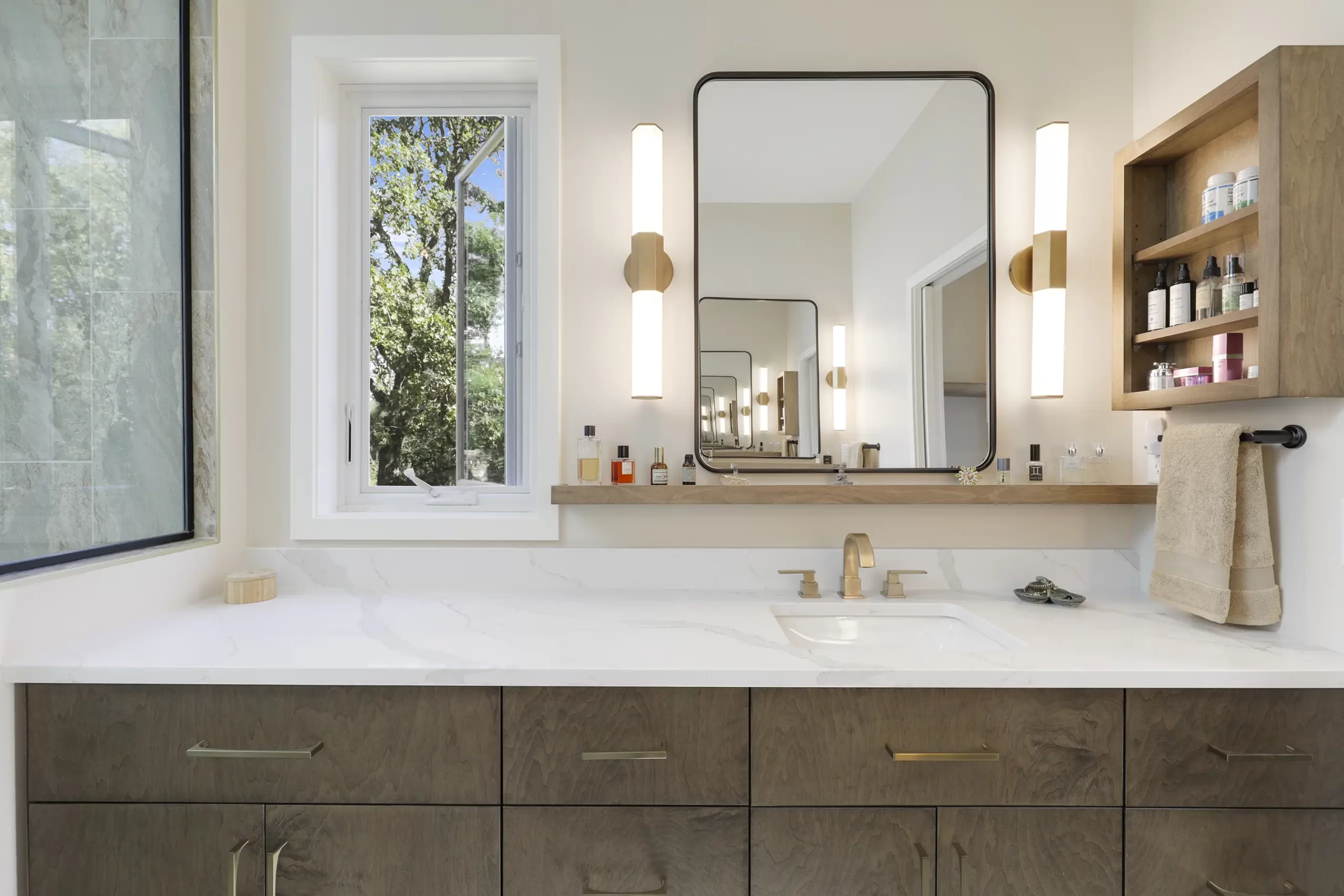 The project also included the build-out of a basement powder room, ensuring that every part of the home reflects the fresh, modern aesthetic of the renovation. The updated Owner’s Suite now serves as a luxurious retreat, blending style, functionality, and comfort in every corner, while offering panoramic views of the St. Croix River. Custom One Renovation’s dedication to quality and design shines through in this Hudson renovation project, transforming the space into a contemporary riverside haven.