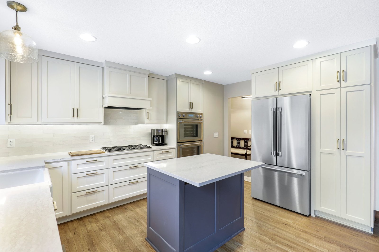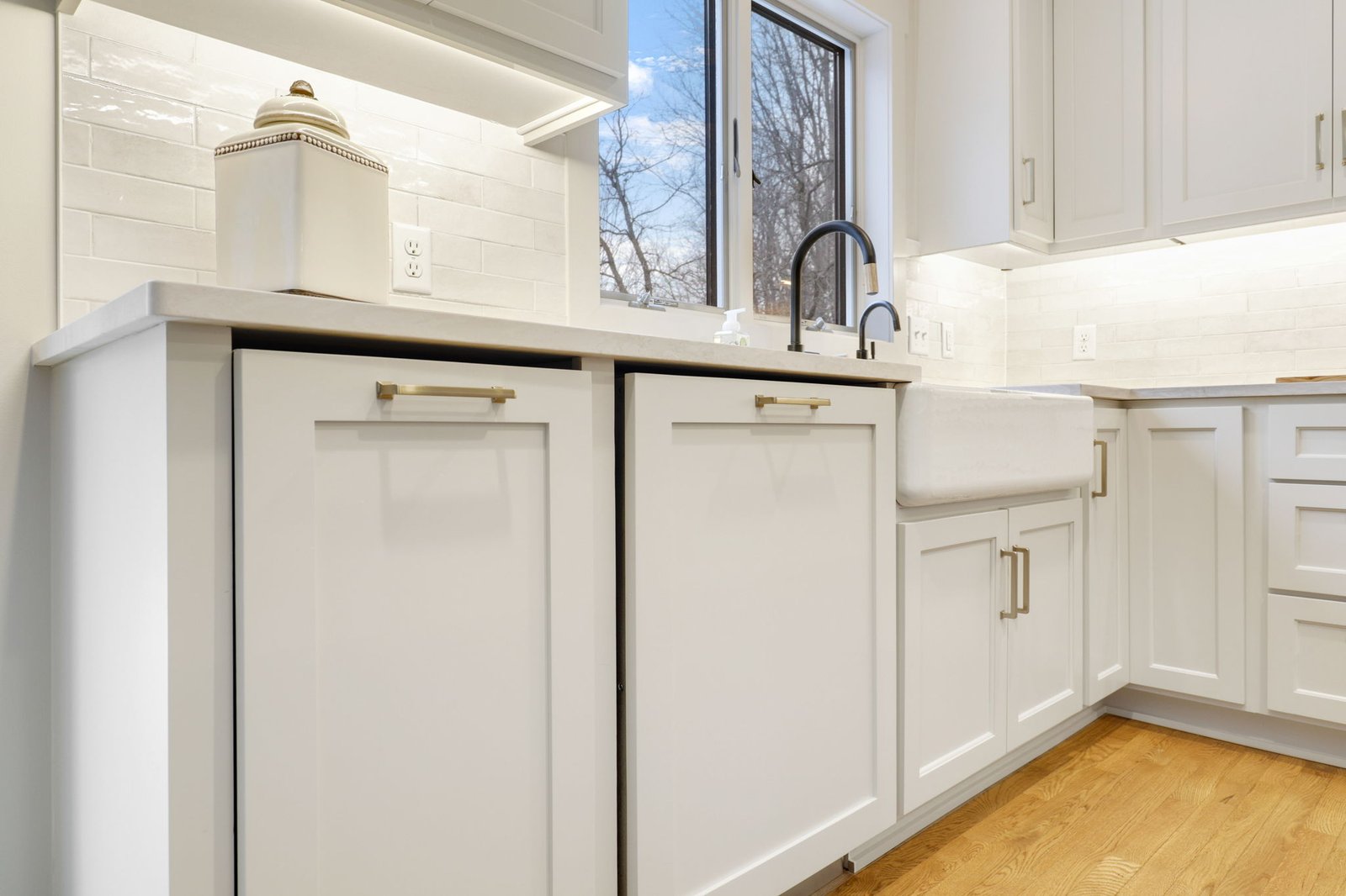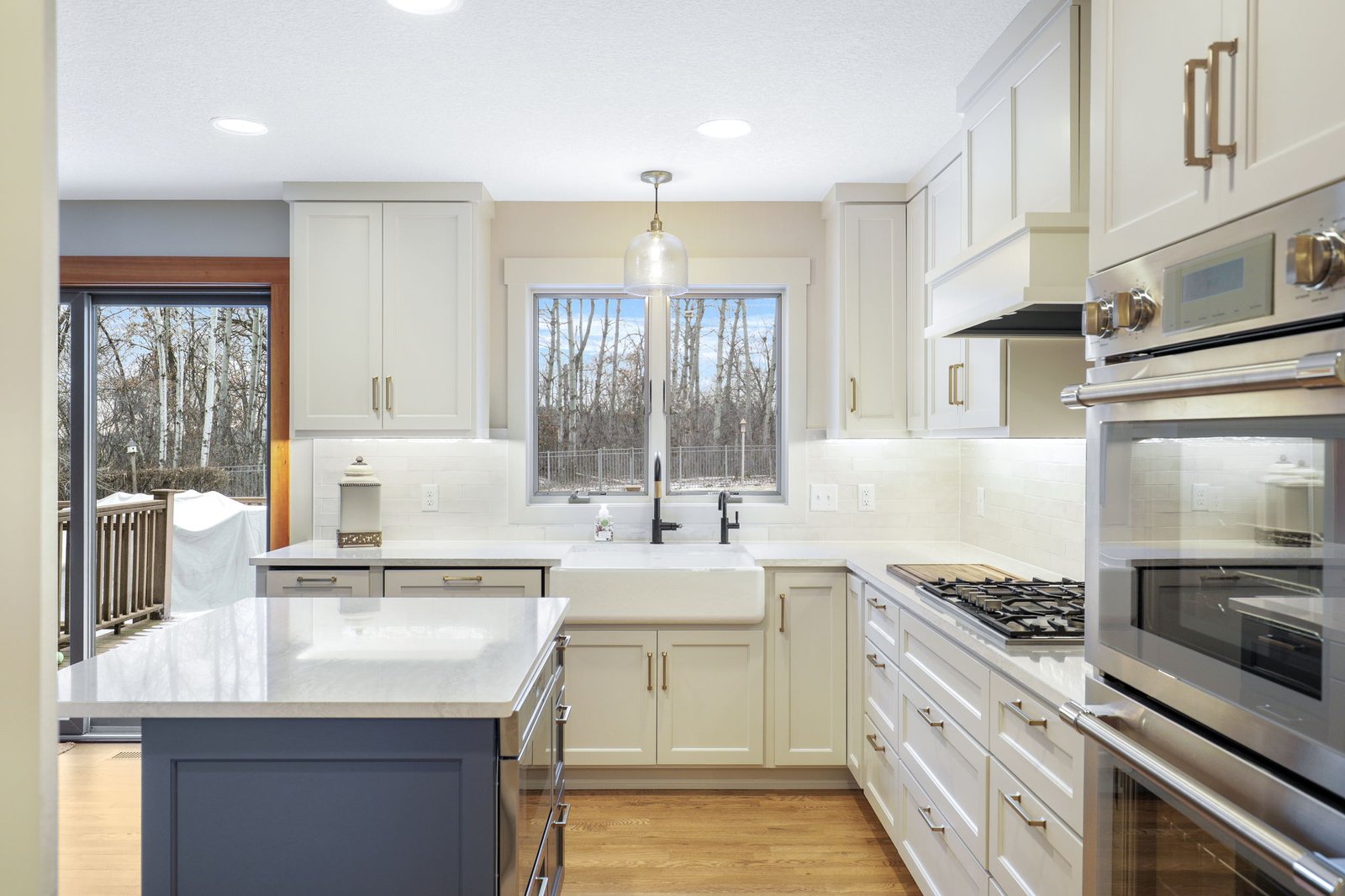 In Roberts, Wisconsin, our team, in collaboration with Interior Impressions in Woodbury, completed a main level renovation that revitalized the kitchen, mudroom, powder bathroom, and laundry room. This project introduced custom cabinetry and durable countertops, alongside modern appliances and updated lighting to infuse the home with elegance and functionality. Plumbing improvements, a fresh coat of paint, sophisticated knockdown ceilings, and new flooring were seamlessly integrated, reflecting the homeowners’ lifestyle while enhancing the overall comfort and aesthetic of the space. With meticulous attention to detail, this renovation harmoniously blended design and practicality, embodying our commitment to transforming living spaces into bespoke environments that exceed expectations.