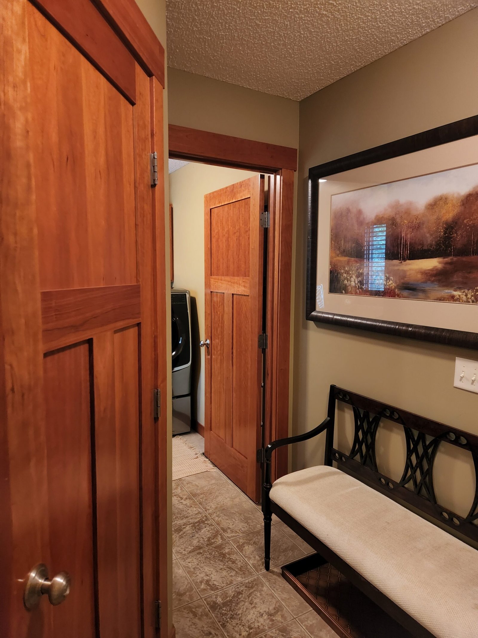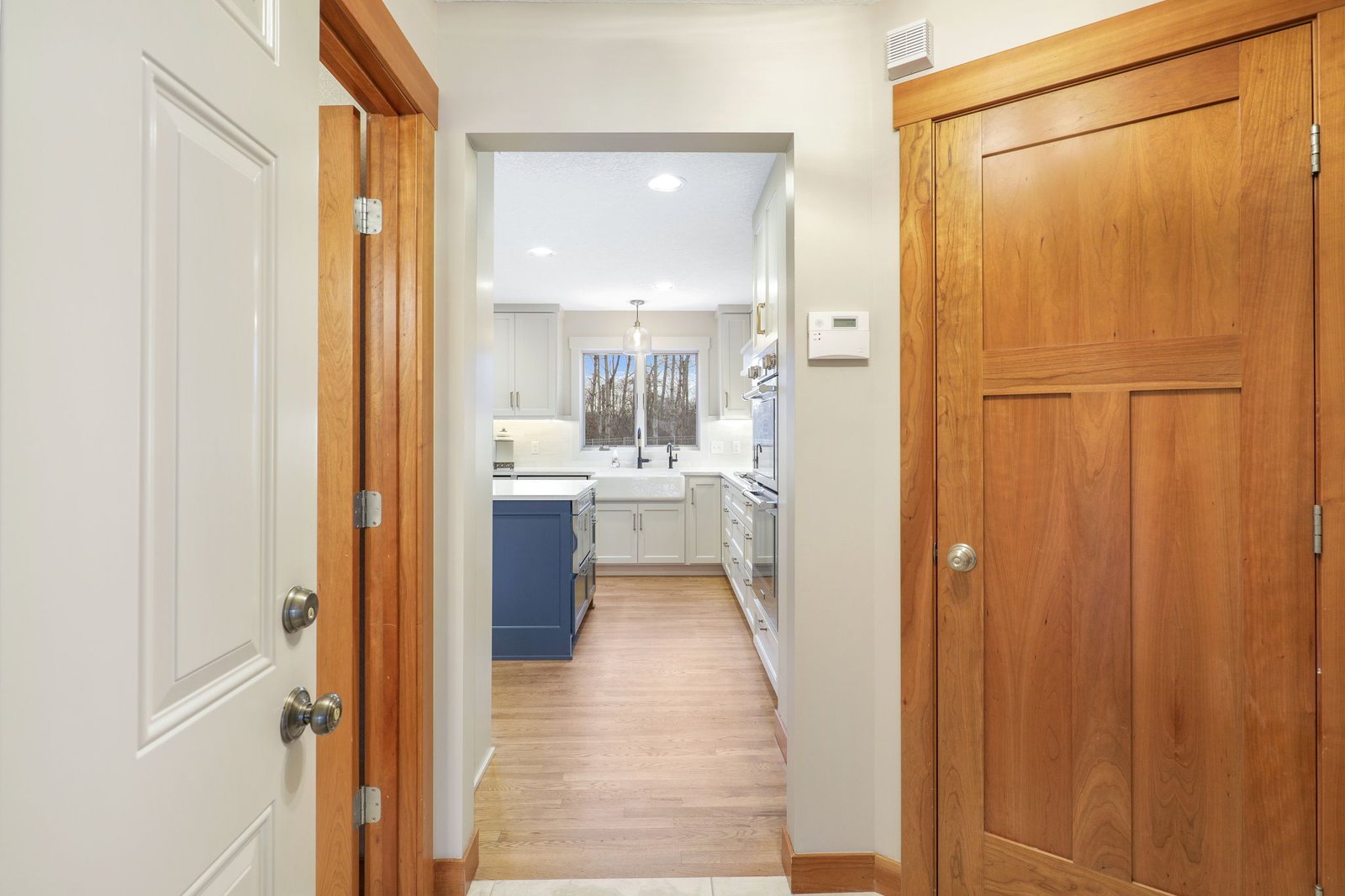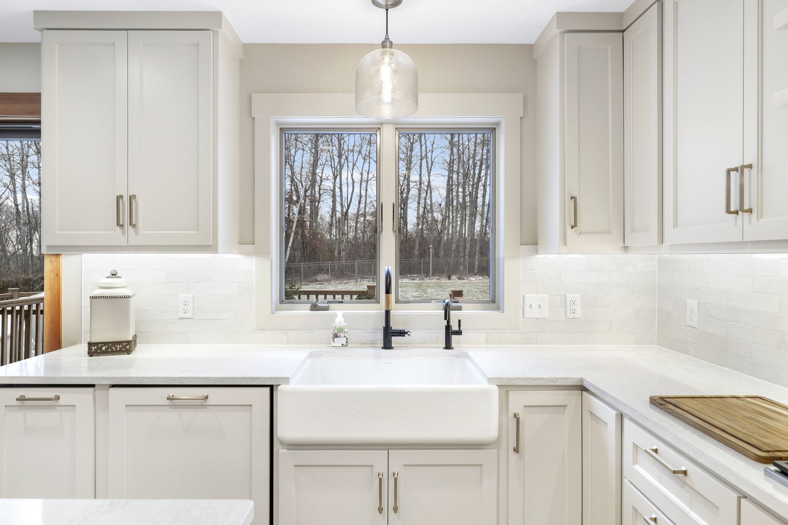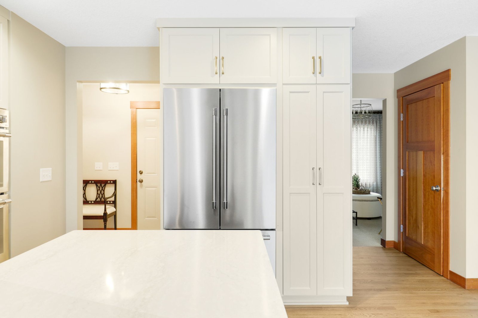 In Roberts, Wisconsin, our team, in collaboration with Interior Impressions in Woodbury, completed a main level renovation that revitalized the kitchen, mudroom, powder bathroom, and laundry room. This project introduced custom cabinetry and durable countertops, alongside modern appliances and updated lighting to infuse the home with elegance and functionality. Plumbing improvements, a fresh coat of paint, sophisticated knockdown ceilings, and new flooring were seamlessly integrated, reflecting the homeowners’ lifestyle while enhancing the overall comfort and aesthetic of the space. With meticulous attention to detail, this renovation harmoniously blended design and practicality, embodying our commitment to transforming living spaces into bespoke environments that exceed expectations.