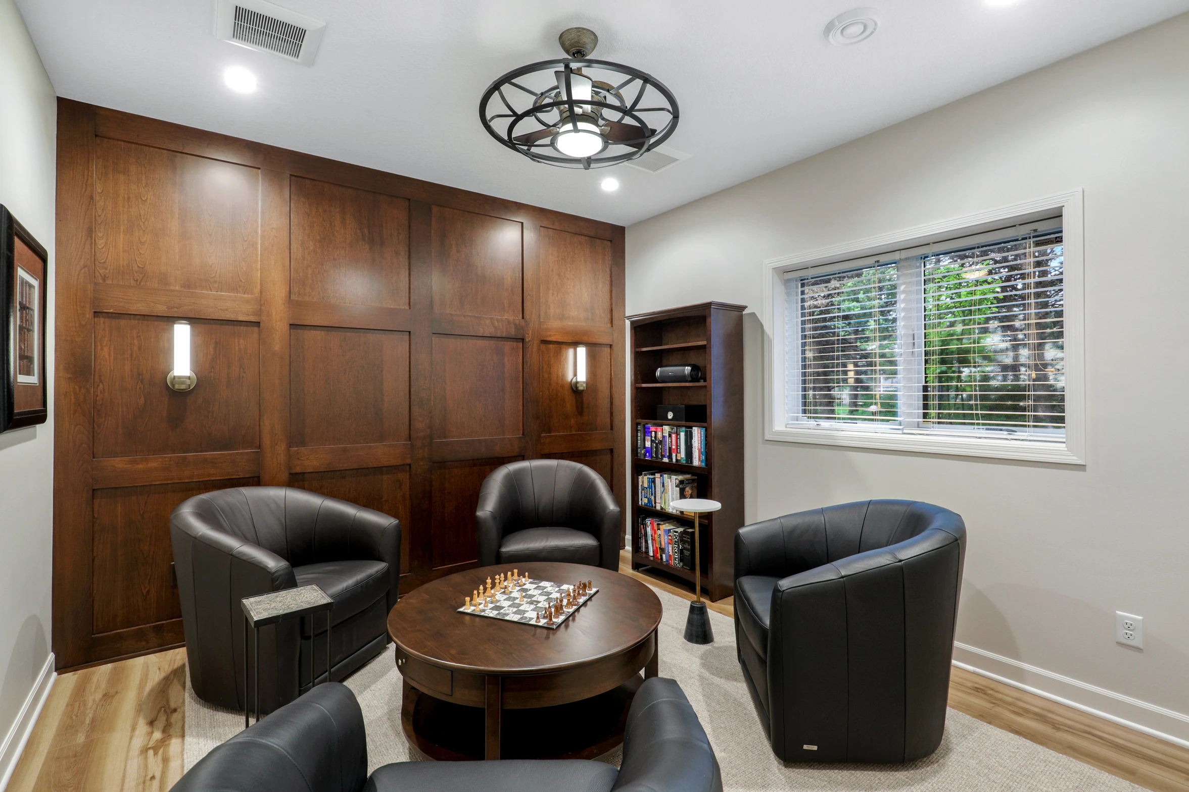 The game room was designed with fun in mind, offering options for pool, darts, and board games. A full bath nearby ensures convenience for guests. Additionally, the bedroom doubles as a smoke lounge, complete with a state-of-the-art ventilation system. This ensures that cigar enthusiasts can enjoy their pastime without compromising air quality. The smoke lounge’s sophisticated decor, plush seating, and dedicated ventilation create an inviting retreat.