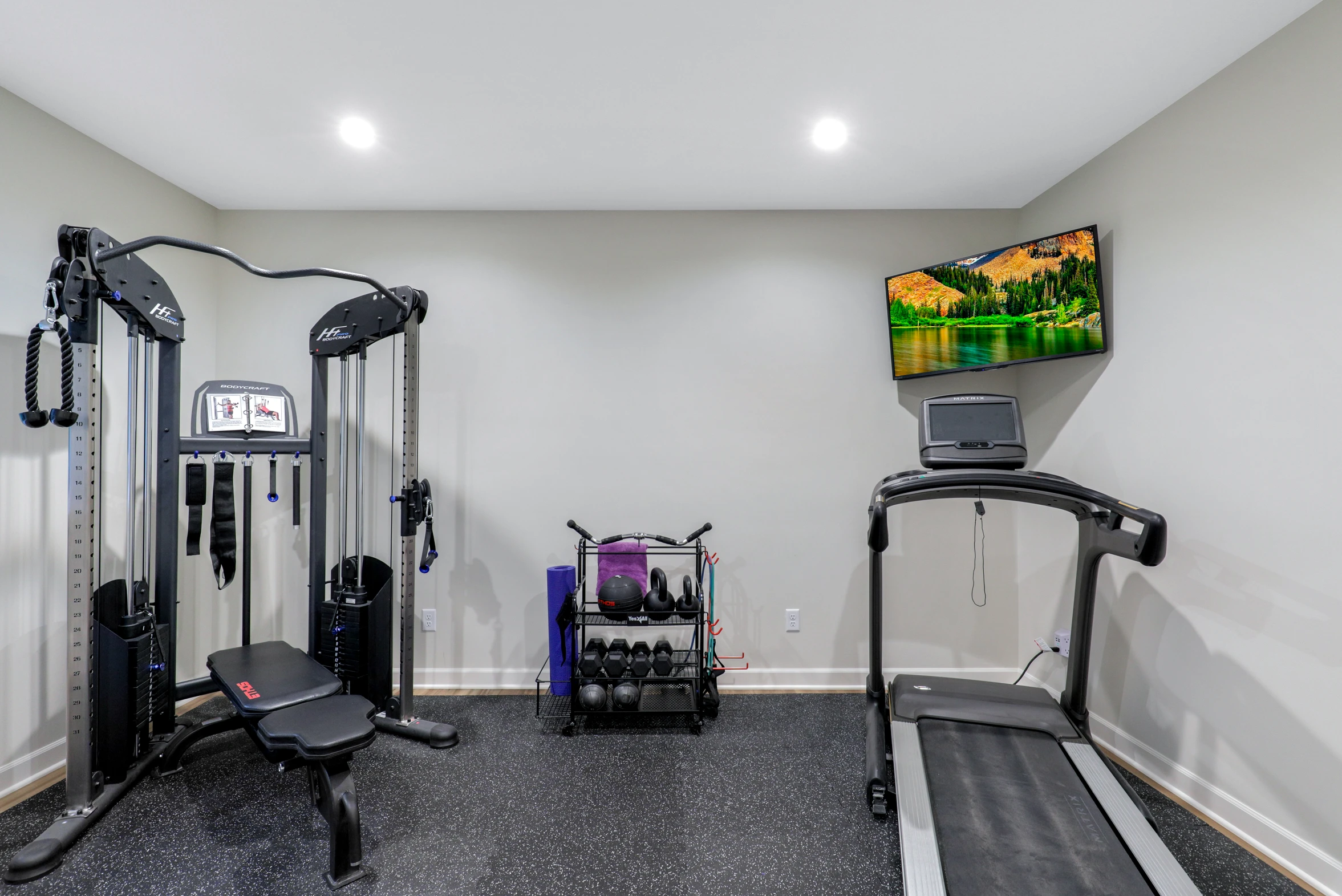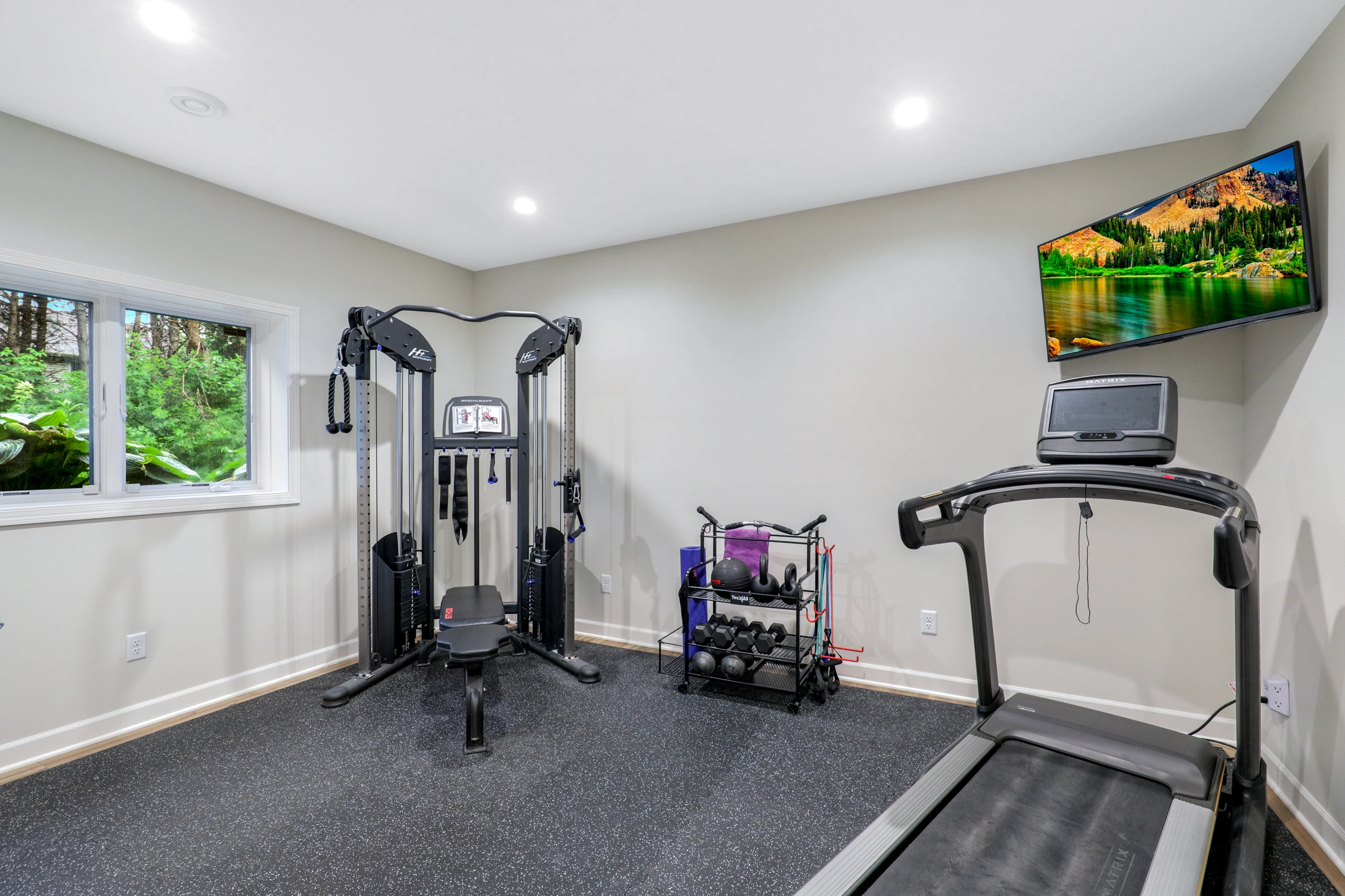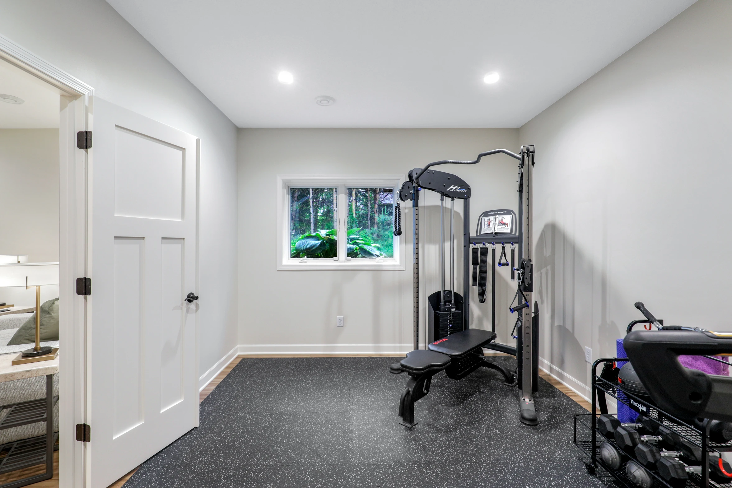 The renovation began with framing new walls to define distinct areas, ensuring each space had its own purpose. The new exercise room was designed to provide a motivating environment for workouts, featuring high-quality flooring, ample lighting, and space for equipment.