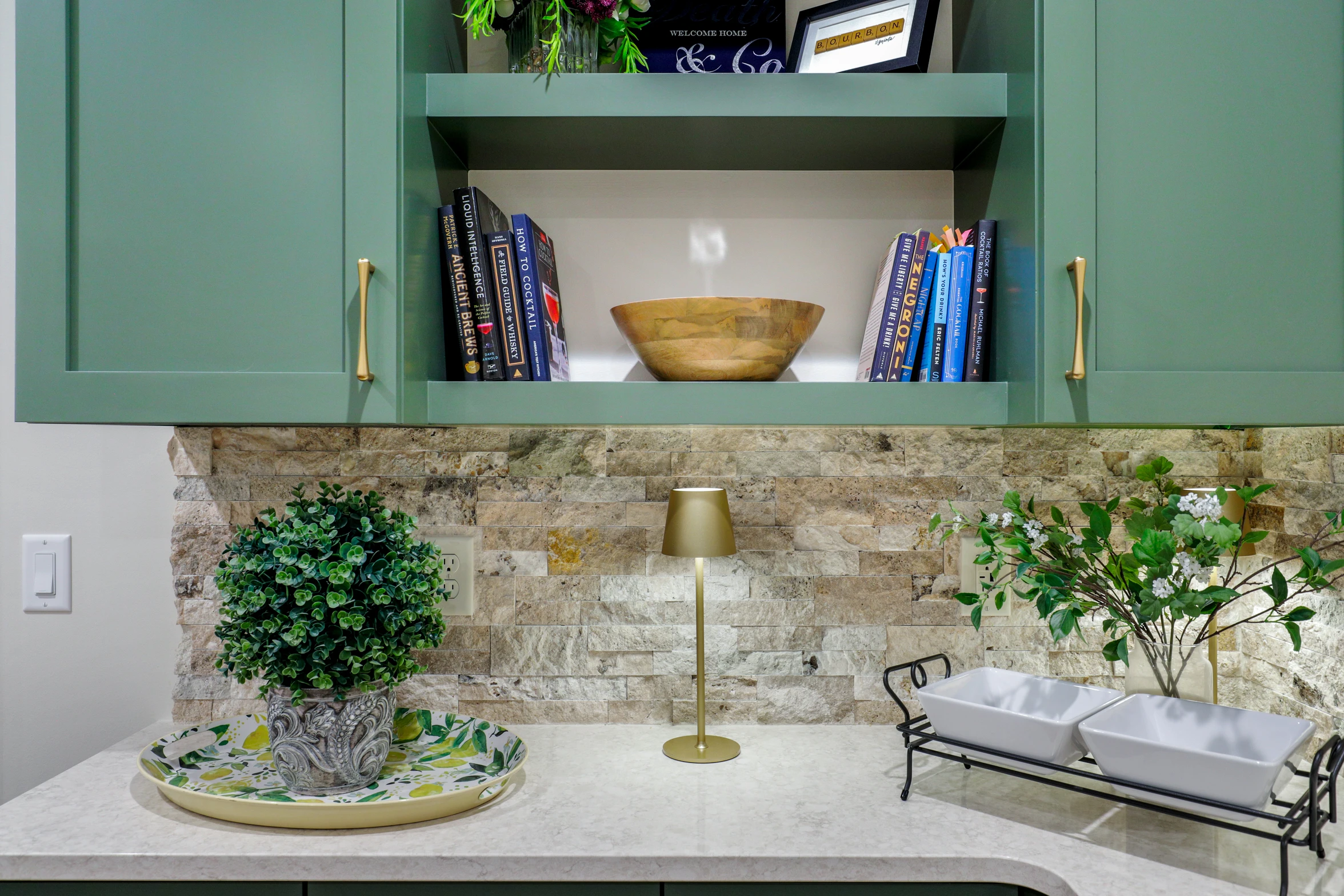 High-end finishes, custom cabinetry, and thoughtful design choices were implemented throughout the renovation. The family room features a custom entertainment center, while the wet bar boasts a unique backsplash. The game room’s lighting fixtures enhance the ambiance, creating a lively atmosphere.